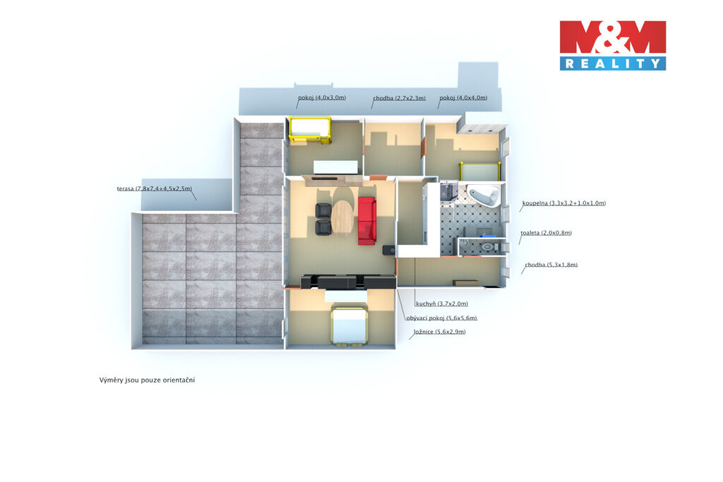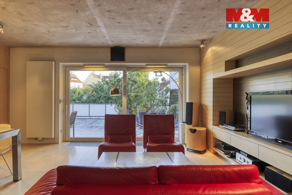 Nabízíme k prodeji prostorný světlý byt 4+kk o užitné ploše 106 m², který se nachází ve velmi žádané lokalitě v Plzni - Roudná. Byt je situován v 1. patře třípodlažního cihlového domu a nabízí klidné bydlení v příjemné části obce s blízkostí přírody. Dispozice bytu zahrnuje obývací pokoj s kuchyňským koutem (zde je designový krb, co vyhřeje celý byt) a vstupem na nadstandardní terasu (71 m²), dále pak dva dětské pokoje neprůchozí, ložnici, prostornou koupelnu (podlahové vytápění, atypický zděný sprchový kout, vana), WC a vstupní chodbu. K bytu je vymezena vlastní garáž - cena odkupu činí 599.000 Kč. Nemovitost byla doplněna o nákladné vybavení a příslušenství (žaluzie a markýzy na dálkové ovládání, zabudované kabely na 7 kanálové kino, odhlučněná stěna mezi obývacím pokojem, betonová stěrka na stropě, moderní kuchyně s bezúchytovým systémem. Ideální pro rodiny hledající klidné bydlení s dobrou dostupností do centra města. Volejte o prohlídku či více info.