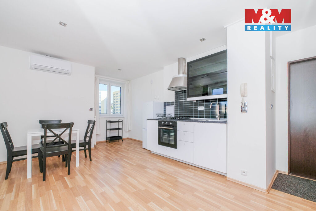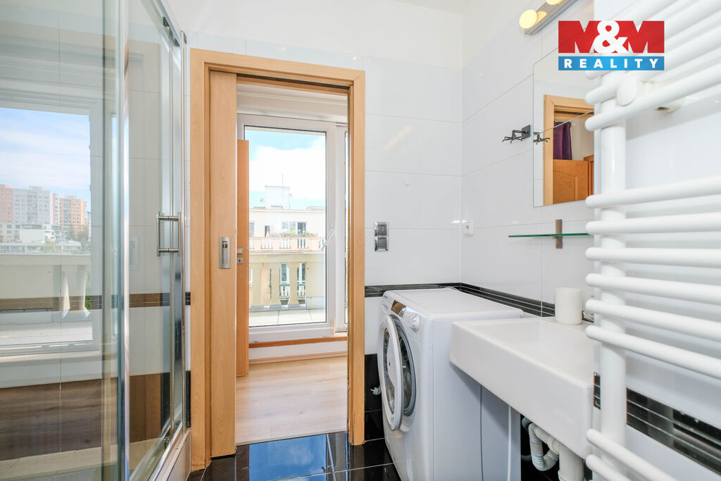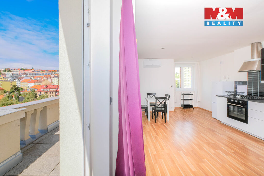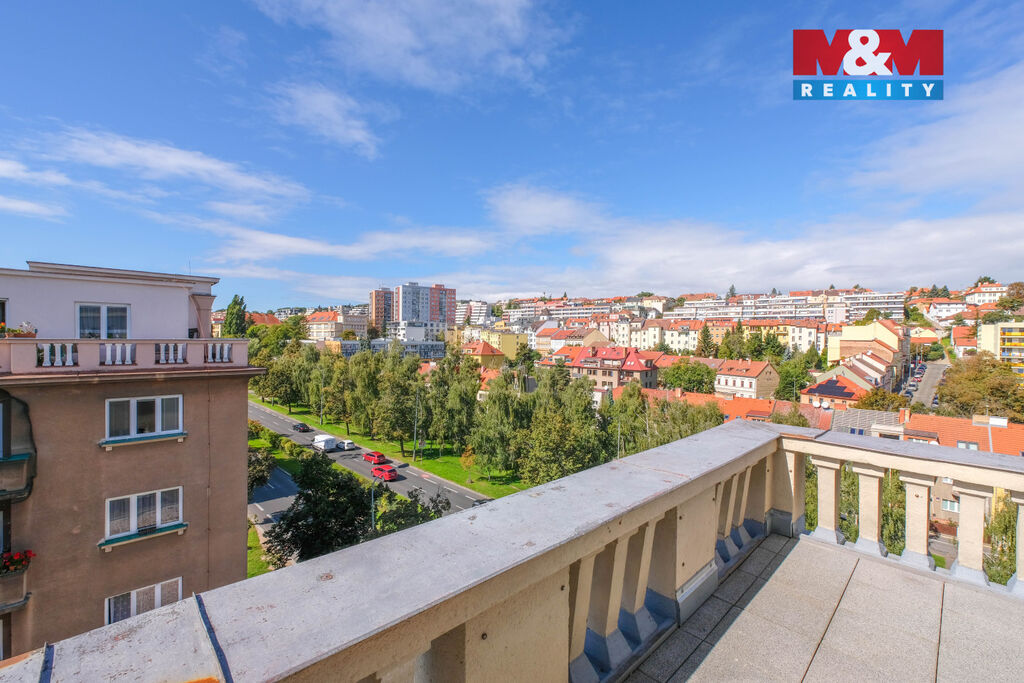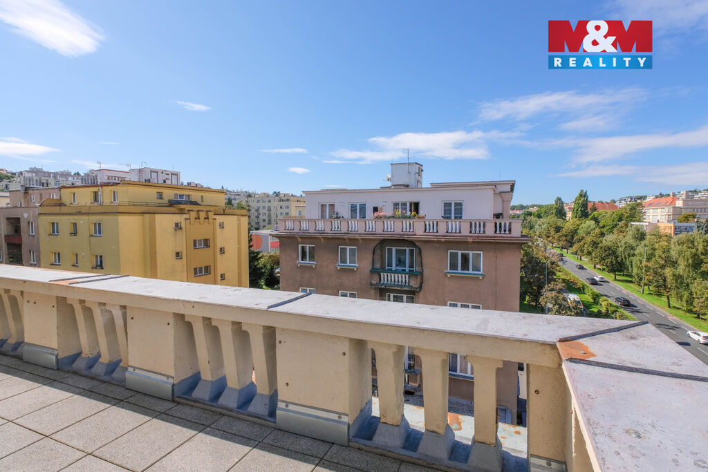 Krásný slunný střešní byt 2+kk na Břevnově, 45 m² s terasou podél celého bytu o velikosti dalších více než 20 m². Byt s klimatizací se nachází v posledním 5. patře zatepleného cihlového domu s výtahem. Plastová okna včetně vstupu na terasu jsou orientována na západ na terasu, okno u jídelního koutu na sever. Byt je zařízený kuchyňskou linkou s plynovou varnou deskou, elektrickou troubou a lednicí. Jídelní stůl se židlemi, televize, v ceně nájmu Vodafone internet. V ložnici dřevěné parkety, v obývacím pokoji plovoucí podlaha. V koupelně sprcha, pračka, topný žebřík a závěsná toaleta. K bytu patří sklepní kóje v suterénu domu. Byt je určený k dlouhodobému pronájmu pro 1 osobu nebo pár. Veškerá občanská vybavenost je v docházkové vzdálenosti od bytu, stejně jako zastávky autobusu Kajetánka a tramvaje Drinopol. Byt je v družstevním vlastnictví. Pro více informací a domluvení prohlídky bytu kontaktujte makléře.