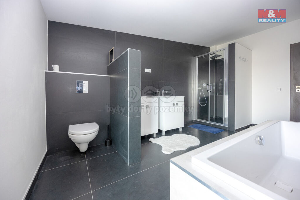 Přízemí tvoří samostatný byt s vlastním vchodem, kuchyňským koutem, obývacím pokojem a sociálním zázemím – ideální pro hosty, kancelář nebo pronájem. Součástí je dvojgaráž pro dvě auta a další parkování před domem. Velká okna zajišťují dostatek denního světla. Díky modernímu designu, nadstandardním dispozicím a blízkosti přírody, cyklostezek a sportovišť je dům perfektní volbou pro náročné rodinné bydlení.
