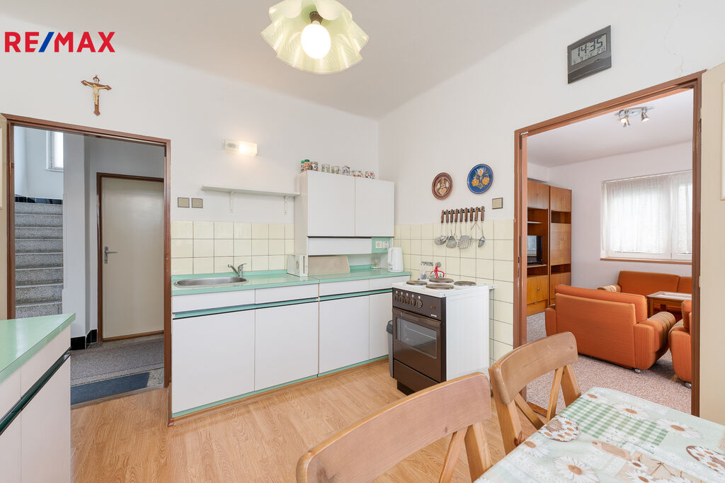Dům samotný pochází z přelomu 60. - 70. let a je pečlivě udržován a i v současnosti obýván, prošel postupně několika úpravami; lze si nicméně představit, že nový majitel si jej bude chtít zmodernizovat a přizpůsobit svému vkusu a potřebám. Ve stávajícím provedení se jedná o dům s dispozicí 4+1 ve dvou podlažích, s celkovou podlahovou plochou 91 m2. V přízemí se nalézají dva pokoje a kuchyně s jídelním koutem, dále koupelna a samostatné WC; v patře pak další dva pokoje a podkroví skýtá další možnosti rozšíření. Dům je částečně podsklepený.