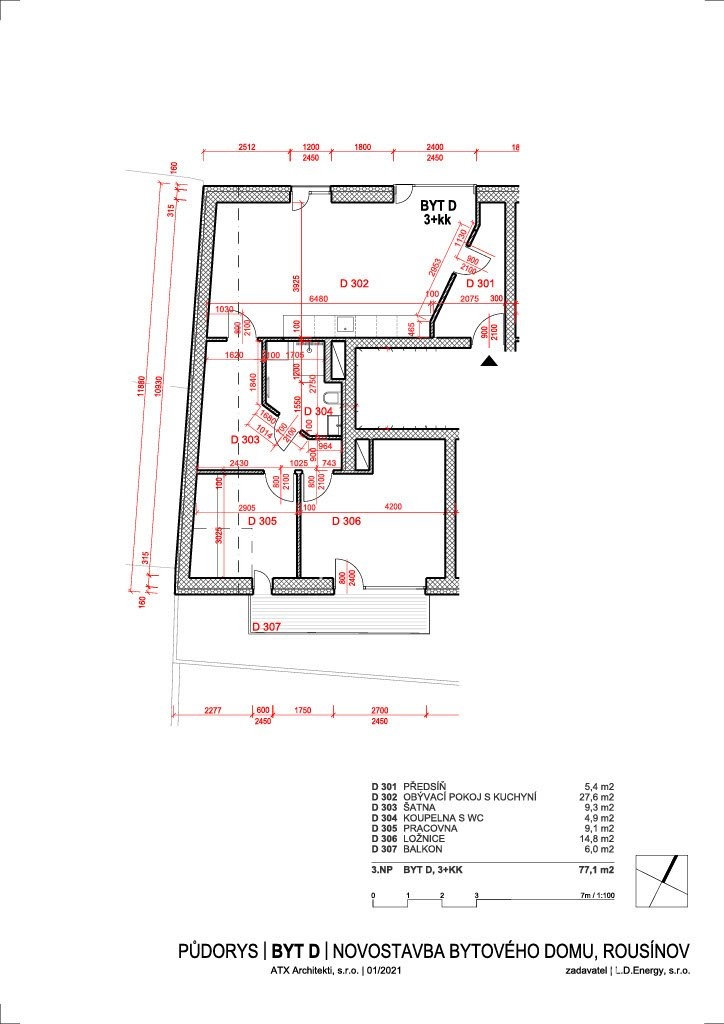 Nabízíme k pronájmu krásný moderní byt 3+kk o rozloze 77m² s balkonem do vnitrobloku v Rousínově. Byt se nachází v cihlovém bytovém domě, který byl postaven před 5 lety, přímo na náměstí.