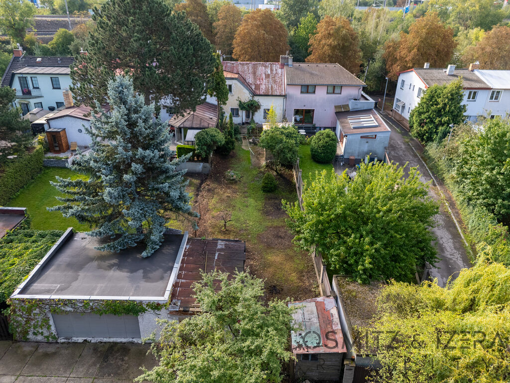 Před domem se nachází malá předzahrádka o ploše cca 36 m² a za domem se rozprostírá velká zahrada s výměrou 327 m², která je dobře přístupná a nabízí příjemné místo pro relaxaci. Na zahradě je také garáž pro jeden automobil a menší zděná kůlna. Celková plocha pozemku činí 449 m², přičemž zastavěná plocha je zhruba 86 m². Podélný tvar zahrady a její orientace zaručuje téměř celodenní sluneční svit, což je ideální pro zahradničení, rodinné aktivity nebo třeba wellness zónu. Zahrada a garáž je přístupná i ze zadní části po asfaltové komunikaci což je veliký benefit.