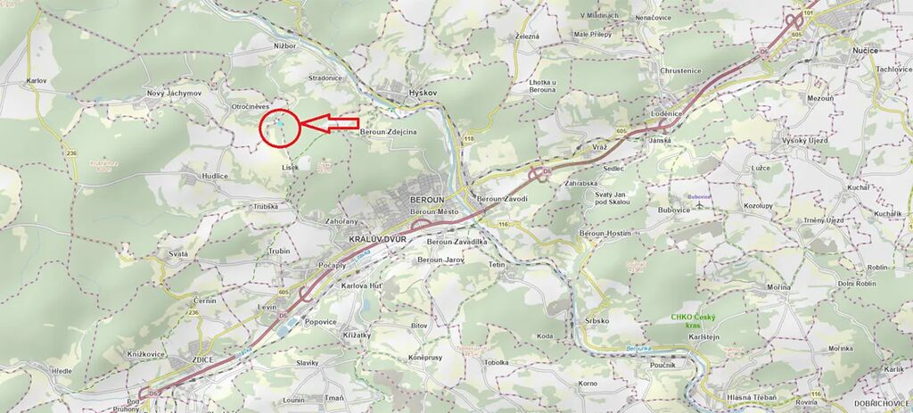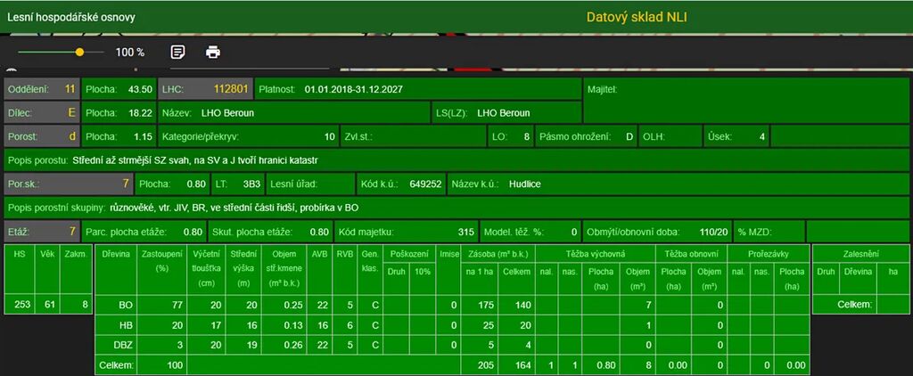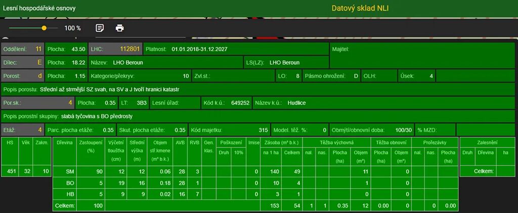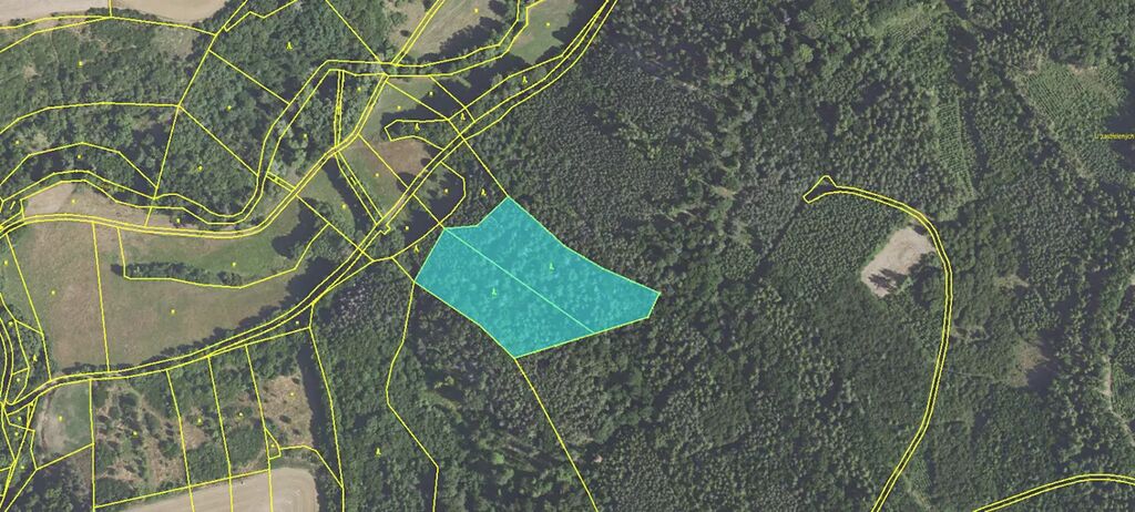 Jedná se o p.č. 2066 vedená jako lesní pozemek o celkové výměře 5 429 m2, vlastníme podíl 1/2 tudíž 2 715 m2.