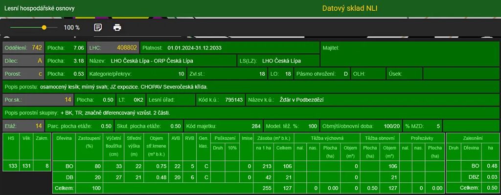 Jedná se o p.č. 1873 vedená jako lesní pozemek o celkové výměře 5 328 m2, z toho vlastníme podíl 1/2 tudíž 2 664 m2.