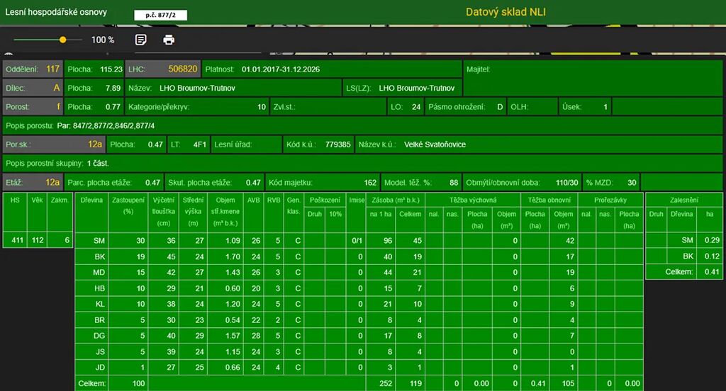 Dále se jedná o p.č. 877/2 vedená jako lesní pozemek o celkové výměře 2 039 m2 a p.č. 877/4 vedená jako lesní pozemek o celkové výměře 2 657 m2.