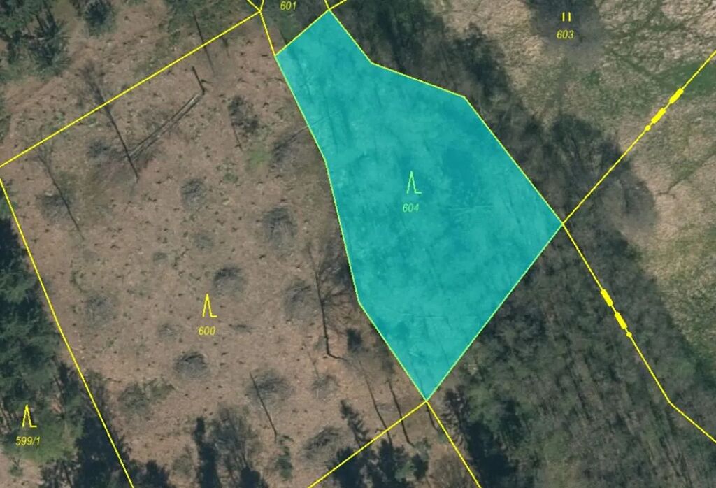 Jedná se o p.č. 604 vedená jako lesní pozemek o celkové výměře 1 876 m2, vlastníme podíl 1/2 tedy 938 m2.