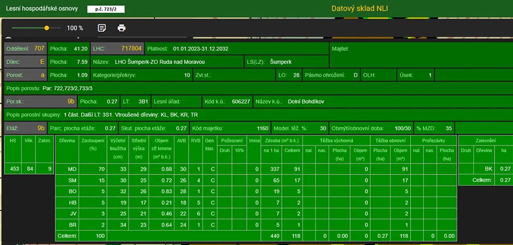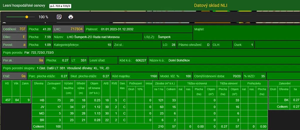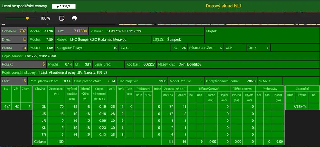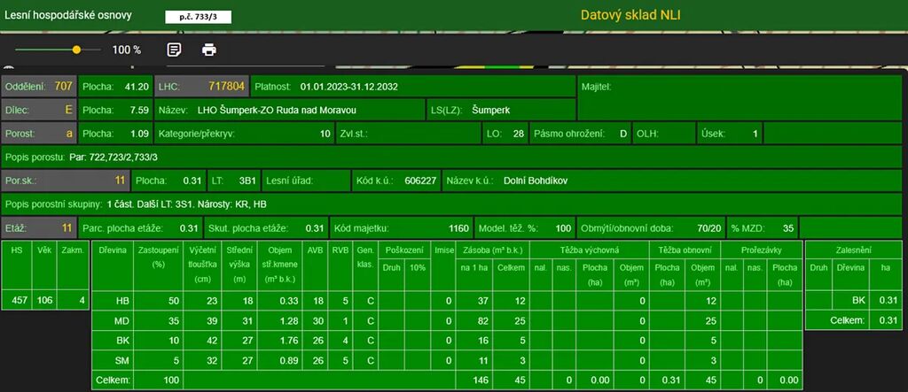 Stáří lesa a LHO viz. foto.