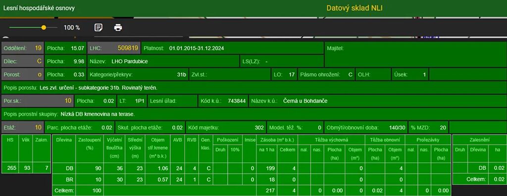 Stáří lesa a LHO viz. foto.