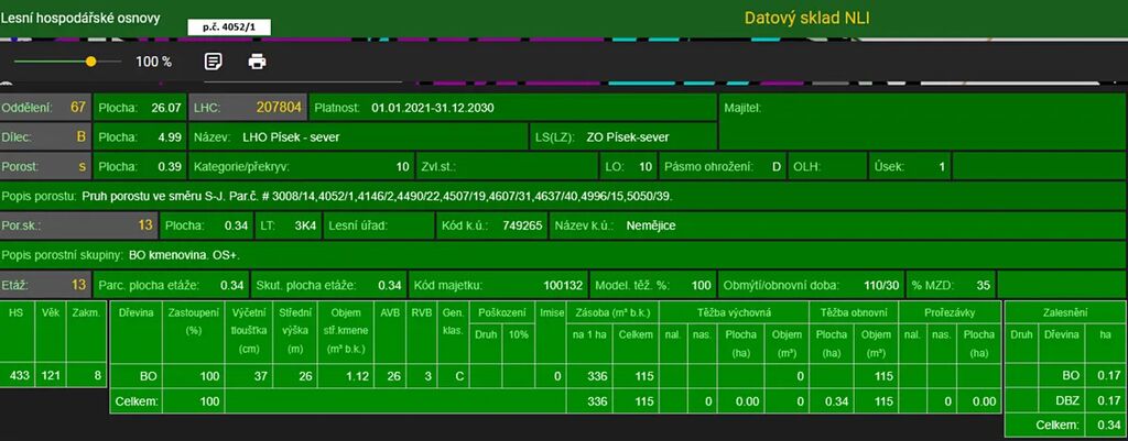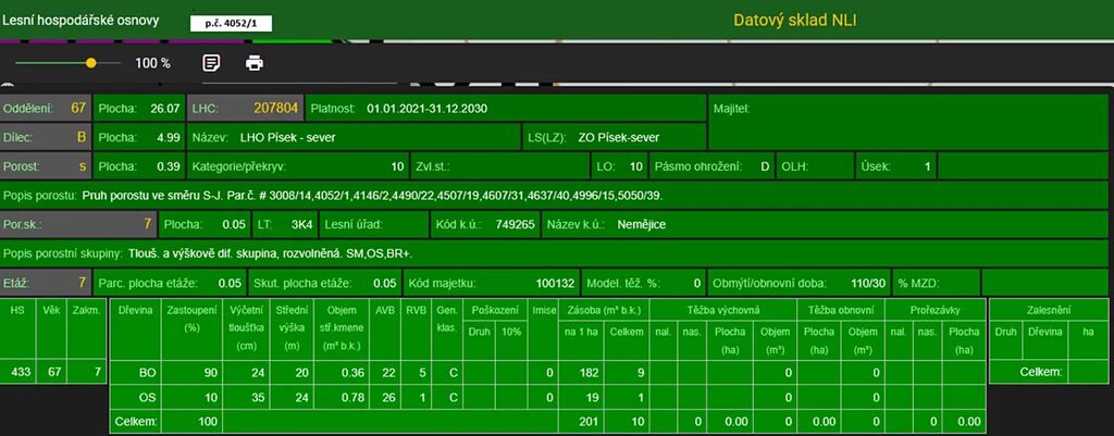 p.č. 4052/1 vedená jako lesní pozemek o celkové výměře 3 960 m2,