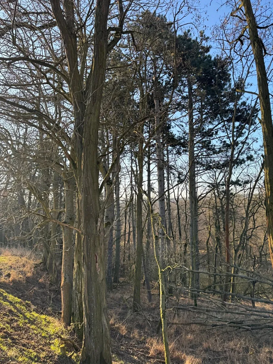 Zastoupení dřevin dle LHO je akát, bříza, dub, topol, stáří lesa 72 a 21 let.