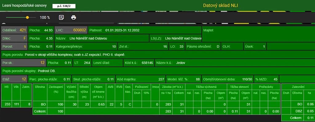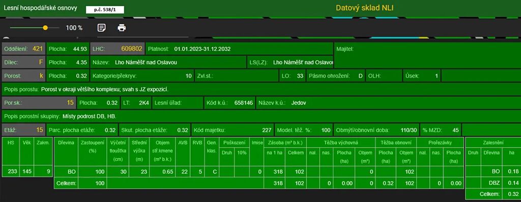 Jedná se o p.č. 538/1 vedená jako lesní pozemek o výměře 3 204 m2.