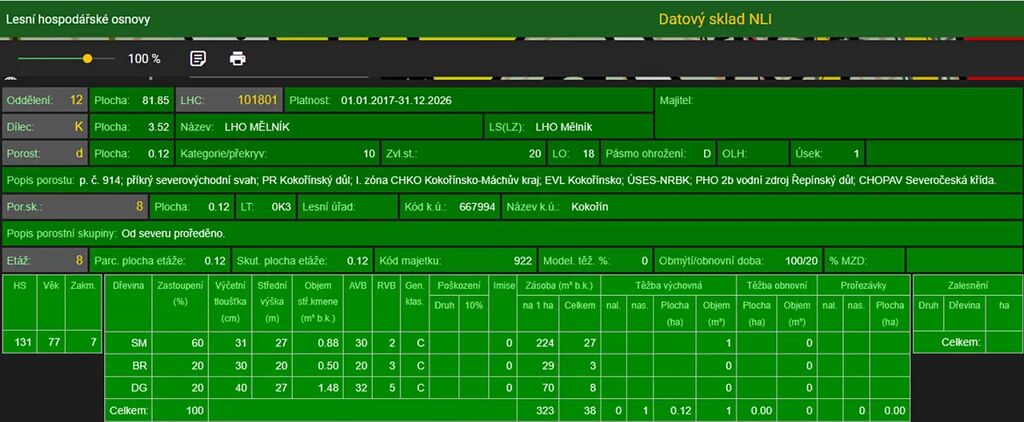 Stáří lesa a LHO viz. foto.