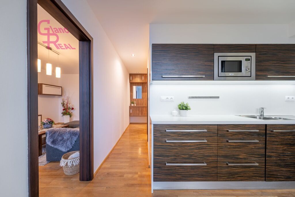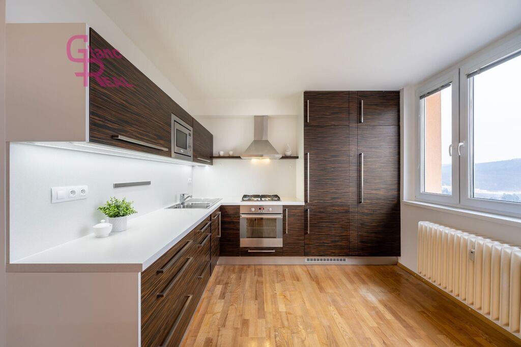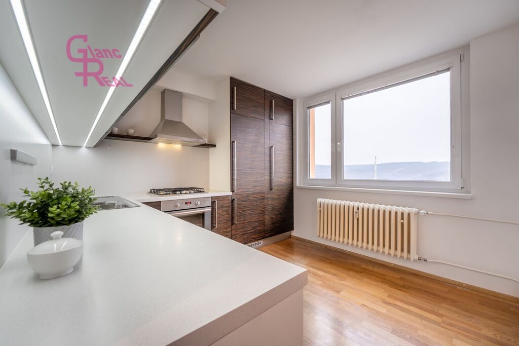 Byt o celkové ploše 73 m2, obytná plocha 64 m2 s dispozicí 2+1 a dvěma balkony je po kompletní vkusné rekonstrukci s rekuperační jednotkou v obývacím pokoji, jádro zděné, nová kuchyňská linka na míru vč. spotřebičů, nová koupelna s rohovou vanou. V bytě jsou nové rozvody vody, el.energie, nové obložky dveří a nové dveře, dřevěné plovoucí podlahy a dlažba. Rovněž jsou v bytě zhotovené stropy ze sádrokartonu, zahlazené stěny.