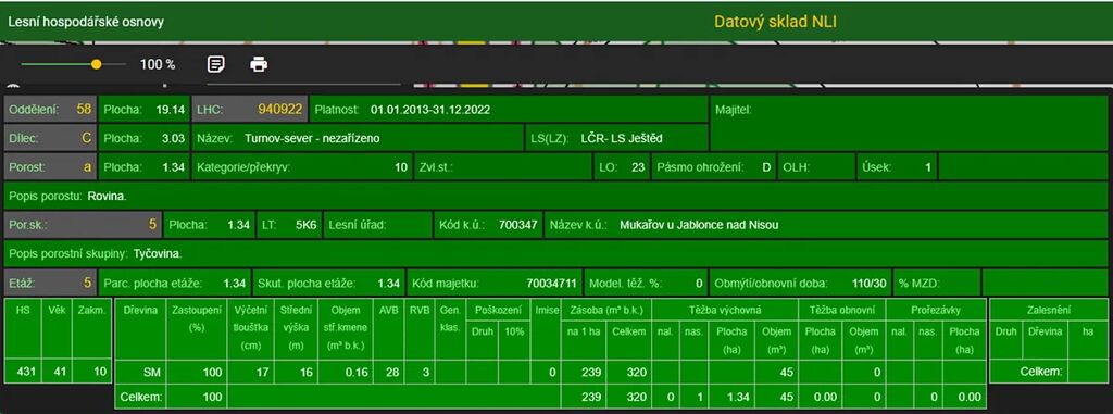Jedná se o p.č. 375/1 vedená jako lesní pozemek o celkové výměře 13378 m2.