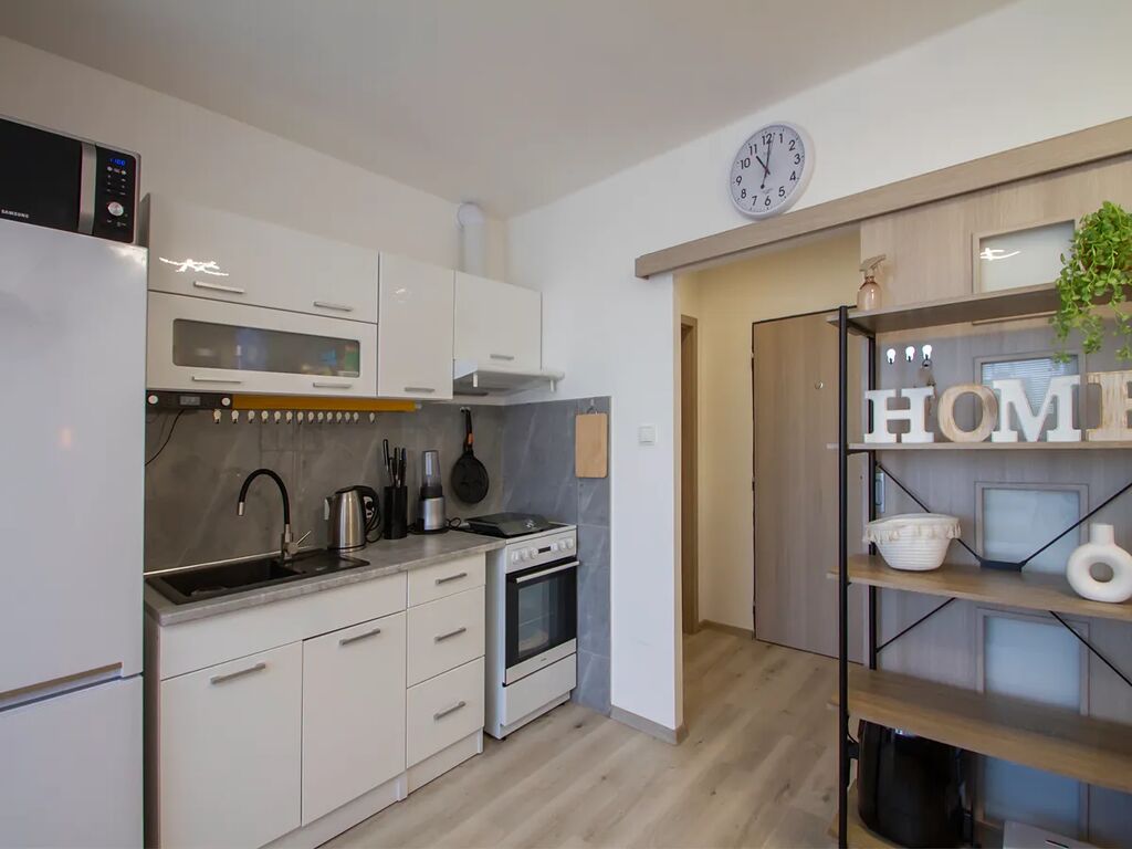 K bytu náleží společný balkón na patře, který je ideální pro relaxaci s výhledem na okolní krajinu, a také sklepem pro úložné prostory. Ergonomické řešení bytové jednotky je doplněno o vybavení, které zůstane součástí bytu. Blízkost MHD zajišťuje pohodlnou dopravu do centra města a dalších částí Hradce Králové.