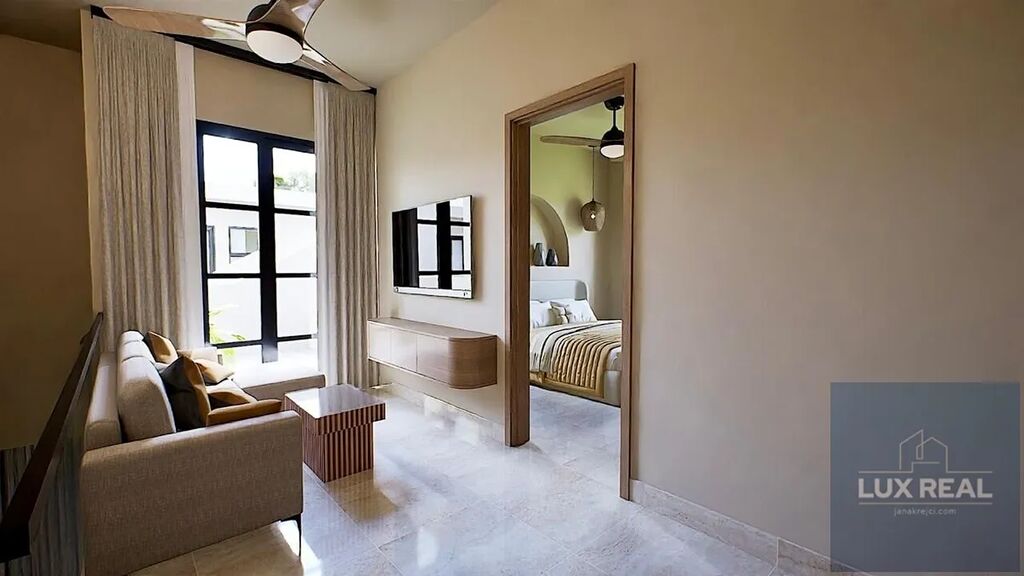 Luxusní rezidenční třípatrové domy s mezonetem s bazénem a whirpoolem jsou situovány na ideálním místě blízko restaurací a obchodů s docházkovou vzdáleností k jedné z nejkrásnějších panenských pláží Dominikánské republiky - Playa El Valle.