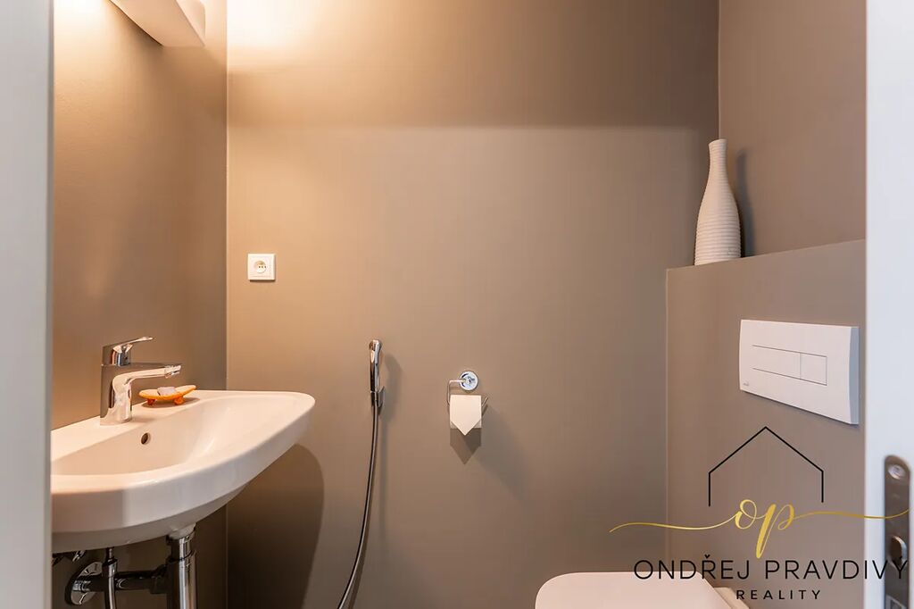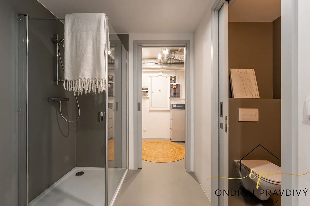Celý interiér domu je s interiérovými dveřmi a značkovými okny (3sklo) laděn do nadčasových šedých tónů a působí vzdušně. K tomu přispívá i nadstandardní světlá výška obývacího pokoje 3,0 m. Bonusem jsou pak omyvatelné výmalby v celém domě, venkovní žaluzie na všech oknech a podzemní jímka na dešťovou vodu.