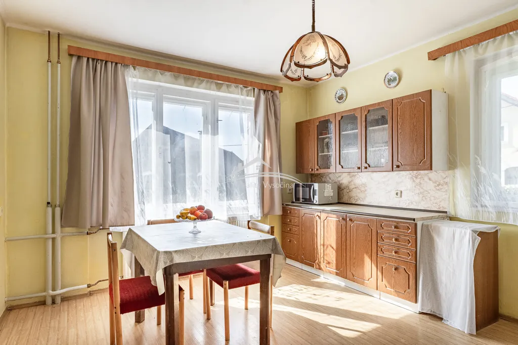 Vytápění zajišťuje kotel na tuhá paliva 5. třídy splňující aktuální emisní normy, ohřev vody elektrický bojler. K dispozici je koupelna s vanou, samostatné WC, balkon, plynová přípojka, garáž a dřevník. Z pokoje ve 2.NP domu je fantastický výhled na Melechov. Ačkoliv je dům v centru obce, zahrada za ním poskytuje díky svému dobrému umístění dostatek soukromí a klidu. V blízkosti domu se také nachází rekreační oblast Stvořidla, která je velmi žádaná díky krásné přírodě.