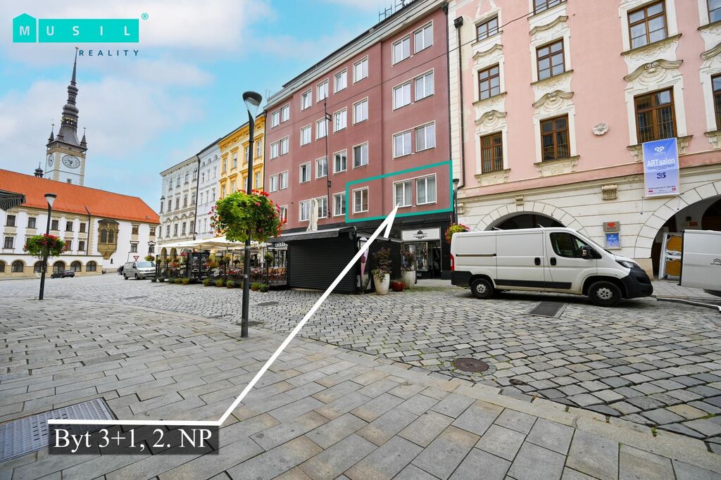 Nabízíme k pronájmu prostorný, světlý byt s výměrou 100 m2 o dispozici 3+1 s orientací na východ a západ. Byt je umístěný v historické budově s výhledem do uzavřeného dvora a na náměstí, nachází se v 1 NP budovy. Stylové bydlení spojuje historické prvky s luxusním bydlením v domě na Dolním náměstí v Olomouci. Byt je s původními prvky jako jsou dřevěné parkety, renovované dveře a zařízení v původním stylu. K dispozici je připravena nájemníkovi nová kuchyňská linka včetně spotřebičů (varná deska, odsavač par, trouba, myčka nádobí).Před koupelnou se nachází prostor s přípravou na pračku a sušičku. Světlá koupelna je vybavena vanou, sprchovým koutem a umyvadlem. WC je samostatně. Ložnice a kuchyně jsou orientovány do vnitrobloku. Z obývacího pokoje a další místnosti je krásný výhled na centrum. Byt má velkou, prostornou chodbu, šatnu a praktickou technickou místnost. Vytápění nemovitosti je zajištěno vlastním kotelnou v domě. K bytu patří sklep a součástí je také příjemná společná terasa se zelení. V domě je výtah. Chcete si dopřát exkluzivní bydlení v centru města Olomouce s ojedinělým Genius loci, v tomto případě Vás srdečně zveme na prohlídku. Cena pronájmu 20.900 Kč/ + 5.000,-energie, elektřina přepisem na nájemníka. Kauce ve výši dvou měsíčních nájmů, provize RK 20.900 + DPH.