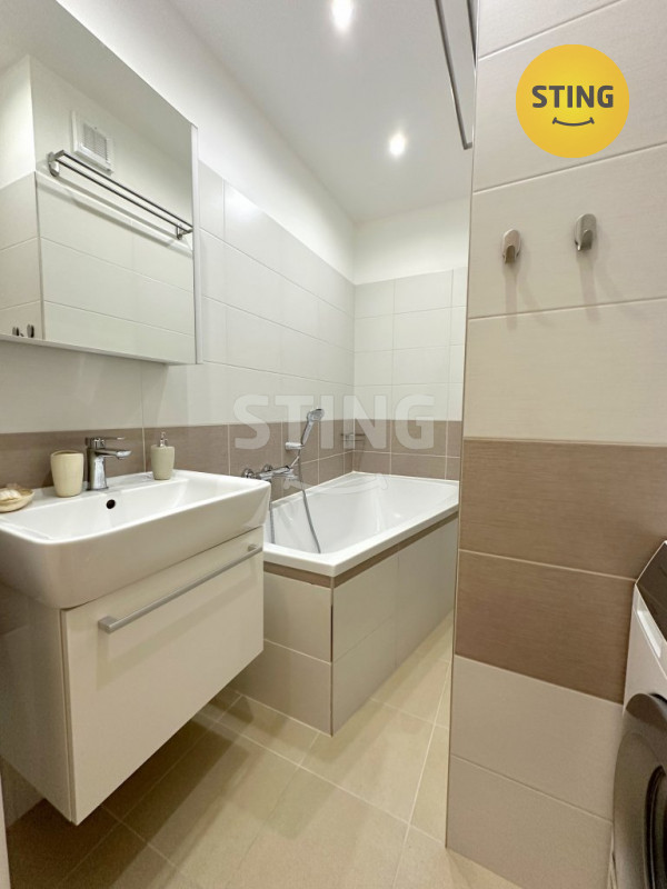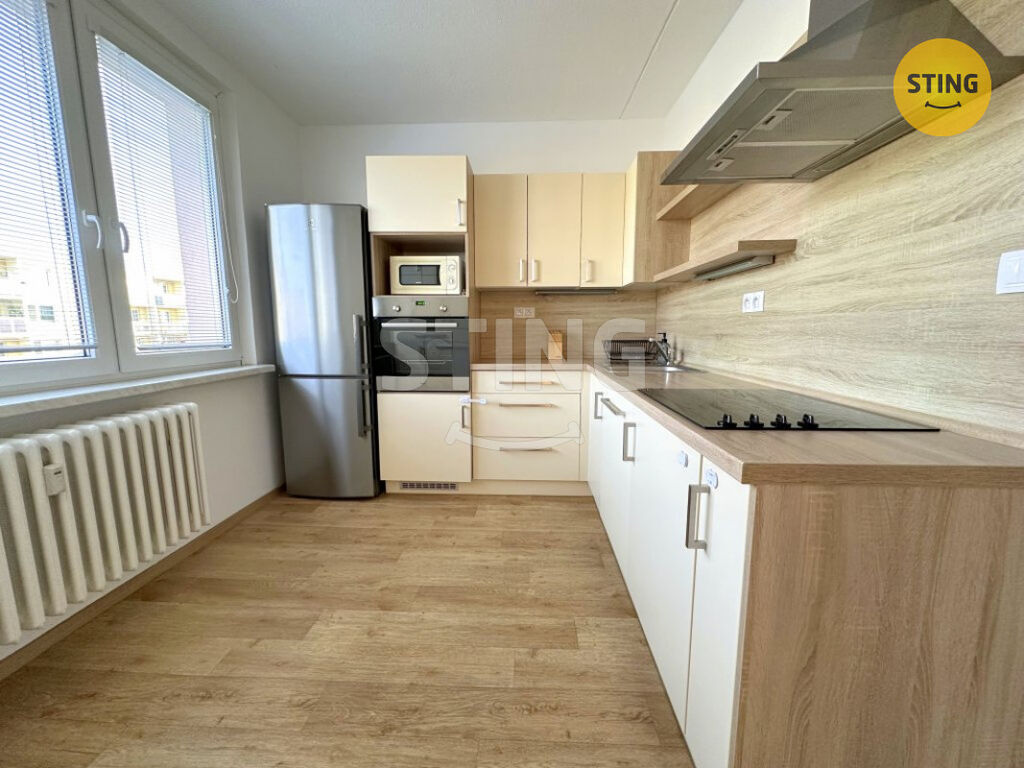 Byt prošel kompletní rekonstrukcí, při níž vzniklo nové zděné jádro s koupelnou s vanou a samostatným WC, moderní kuchyňská linka s vestavěnými spotřebiči (trouba, myčka, sklokeramická deska) a k dispozici je i lednice s mrazákem a mikrovlnná trouba.