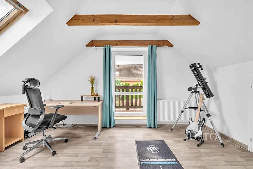 Co se domu týče, ten byl kolaudován v roce 2006. Dům je udržovaný a velmi dobře řešený. Každý prostor je zde využit a geniálně promyšlen. 5 neprůchozích pokojů dává možnost mít v domě kancelář či místnost na vaše koníčky.