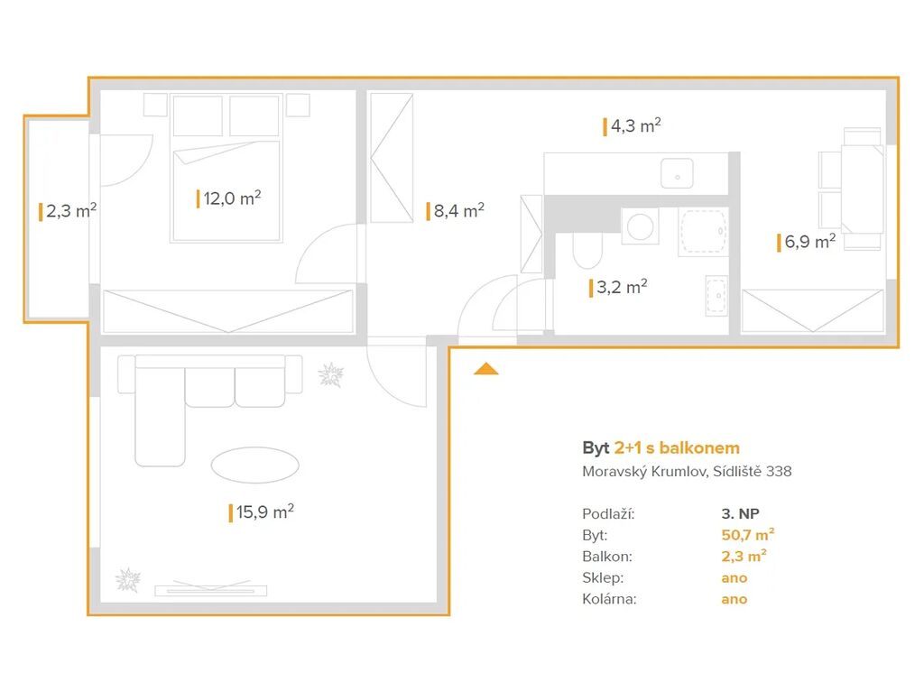 Útulný byt 2+1 s balkonem v Moravském Krumlově.