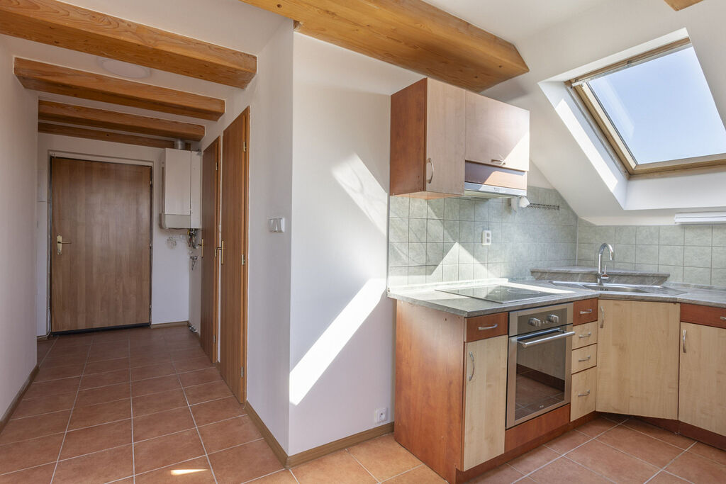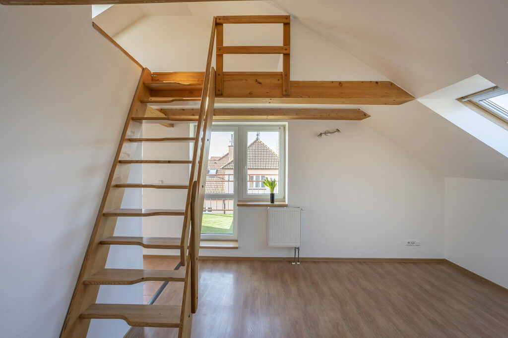 Pokud hledáte útulný a světlý byt v klidné části Poděbrad, jen 300 m od lázeňské kolonády, právě jste ho našli. Nachází se v posledním patře cihlového domu na rohu ulic Dr. Beneše a Dr. Horákové a nabízí krásný výhled, který si můžete vychutnat z prostorné terasy. Byt má podlahovou plochu 49 m², k tomu podkrovní prostor o velikosti 17 m² (nezapočítává se do podl. ploch, světlá výška pod 1,2 m), terasu 8 m² a samostatný sklep o výměře 7 m², který je ve výhradním užívání. Celková užitná plocha činí 81 m².