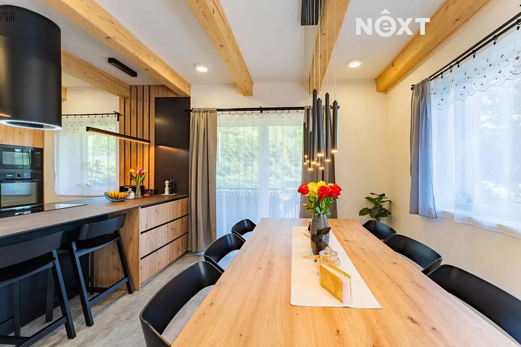 Zděný dům, který si dnes můžete pořídit, nabízí dispozici 4+kk s velkou šatnou, která může fungovat jako další plnohodnotná místnost, technickou místností, předsíní s botníkem za vtipně řešenou falešnou zdí a spoustou vychytávek. Kompletní rekonstrukce z dílny profi interiérového studia do současné podoby byla dokončena teprve před několika měsíci, můžete si tedy užívat fungl nového voňavého luxusu. Použity byly nejkvalitnější materiály a zařizovací předměty, celý interiér je řešen s důrazem na funkčnost, moderní design, pohodlí a maximální využití prostoru. Zajímavé jsou rovněž detaily, například LED osvětlení místností i jednotlivých prvků, vestavný nábytek, kamenná stěna v obývacím prostoru, falešná zeď v předsíni a mnoho dalšího.