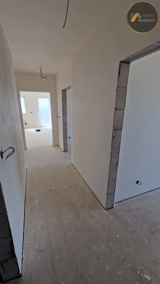 Nabízíme k pronájmu bytovou jednotku 5+kk (označenou jako levá část č. 1) v moderním bungalovu o užitné ploše 123 m² s pozemkem 415 m².