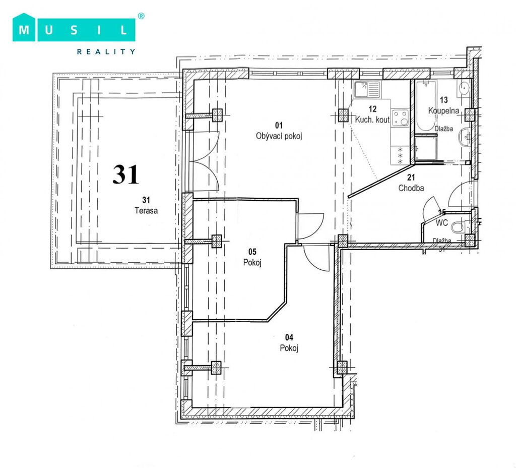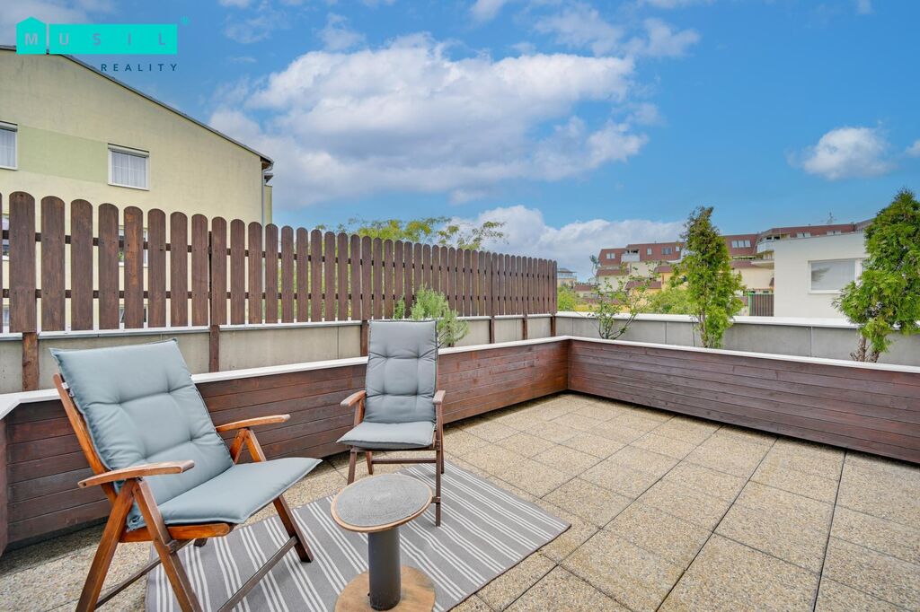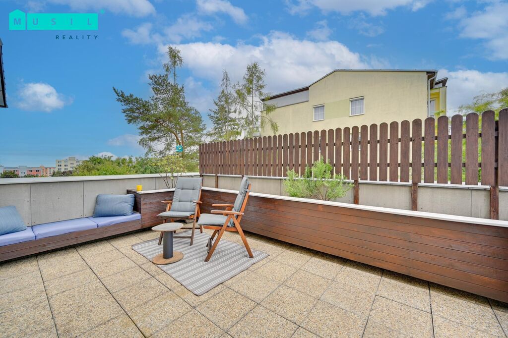 Velkou předností je prostorná terasa o rozloze 24 m. Terasa je přirozeným prodloužením obývací části. Výrazně rozšiřuje obytný prostor a zvyšuje komfort každodenního života. Můžete si tu vychutnávat ranní kávu, relaxovat po práci, posedět s přáteli nebo vytvořit vlastní zelenou oázu.
