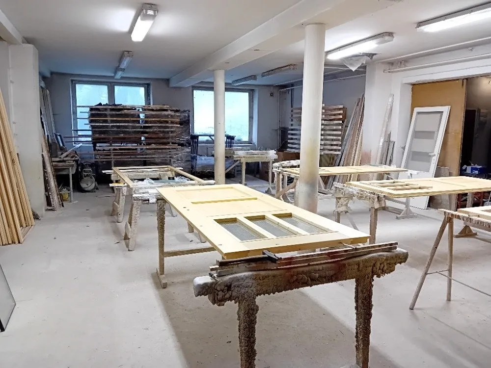 Objekt je zděný, nepodsklepený s přistavěnou velkou garáží o výměře cca 90m2 (dřevostavba). V patře objektu jsou vybudovány 2 byty s dispozicí 3+kk. V přízemí se nachází dílny, které jsou rozdělené na 4 větší a 2 menší místnosti, kancelář, WC, sprchy, šatna pro zaměstnance a 3 místnosti využívané k bytovým jednotkám.
