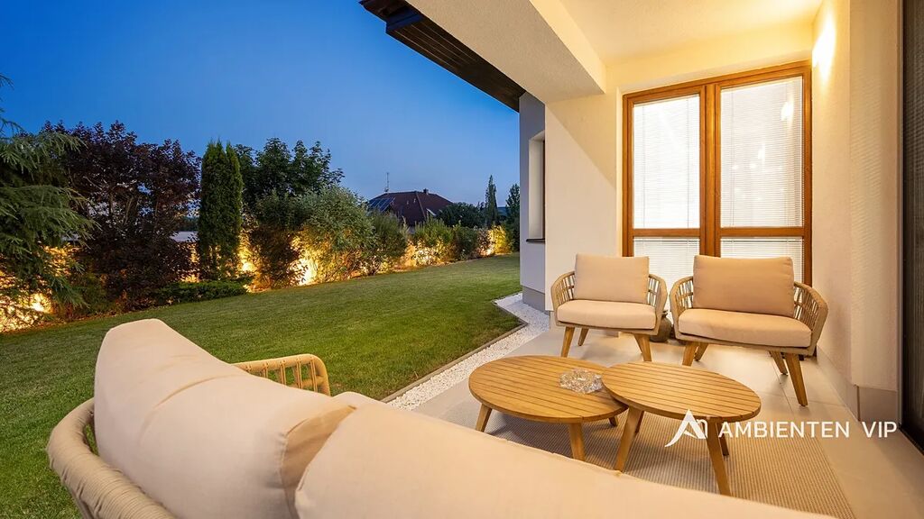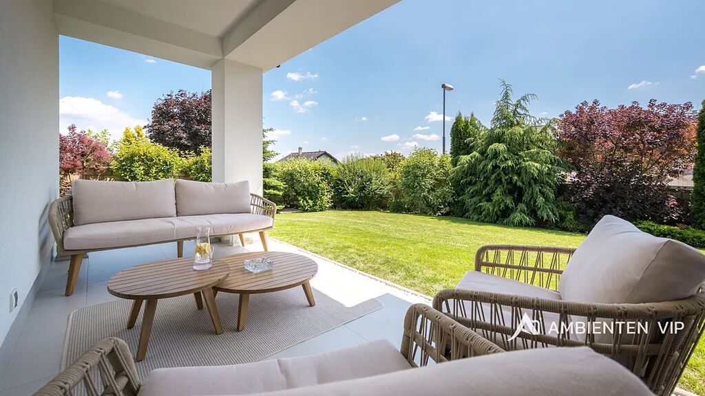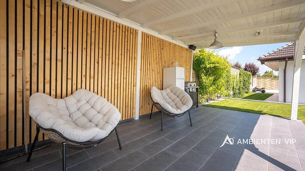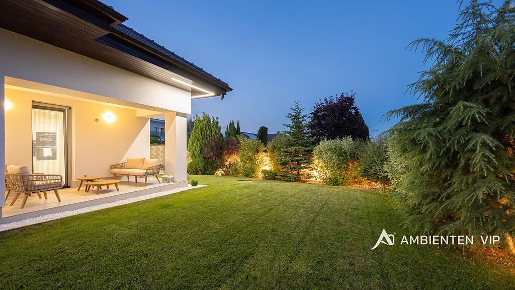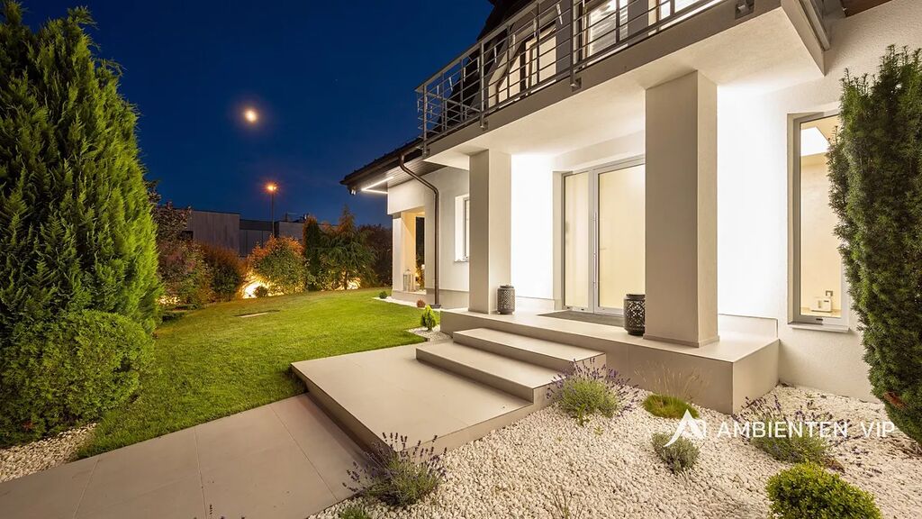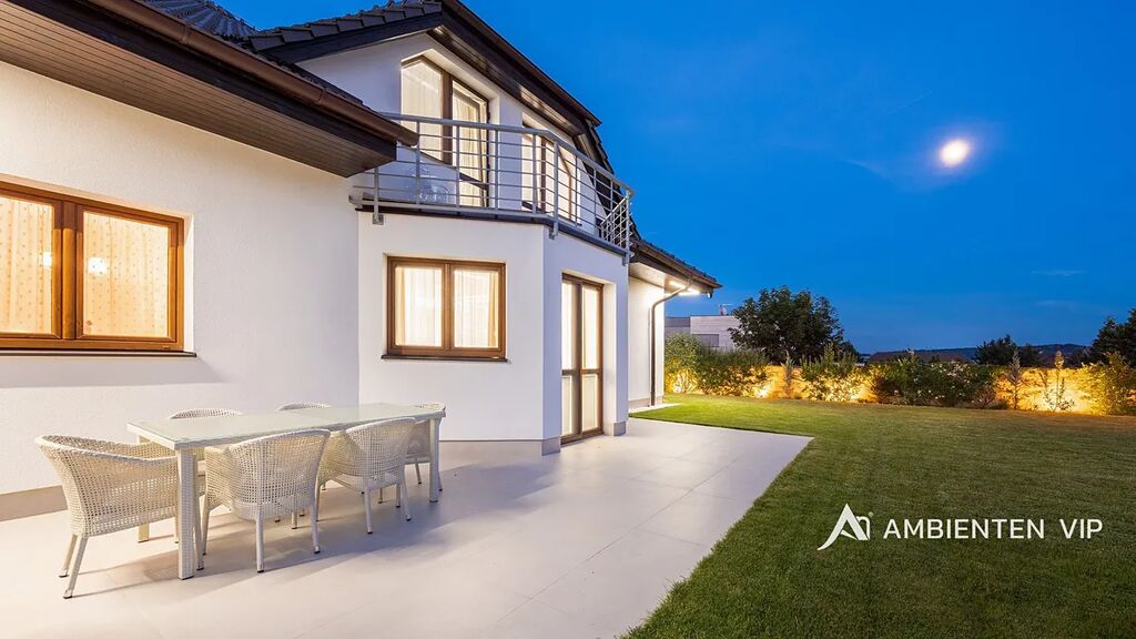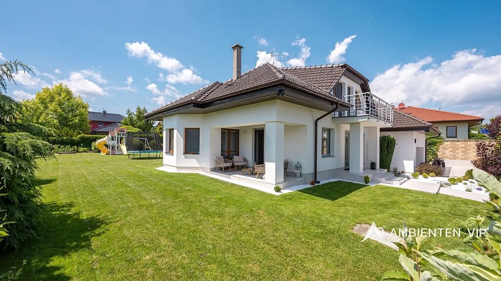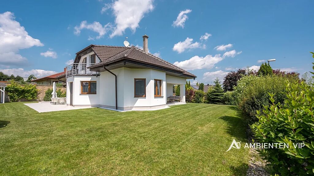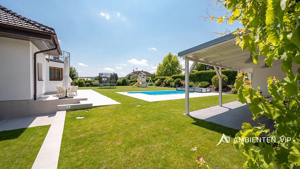 AMBIENTEN VIP si vám dovoluje exkluzivně nabídnout prodej luxusní třípodlažní vily o dispozici 6+kk se dvěma koupelnami, okrasnou zahradou, bazénem a garáží pro dva vozy v obci Moravany u Brna. Nemovitost prošla kompletní rozsáhlou rekonstrukcí a nevyžaduje žádné investice. Je v perfektně technickém stavu. Tato nemovitost uspokojí a velice náročné klienty. Celková užitná plocha domu činí 360 m² a CP pozemku činí 1188 m².