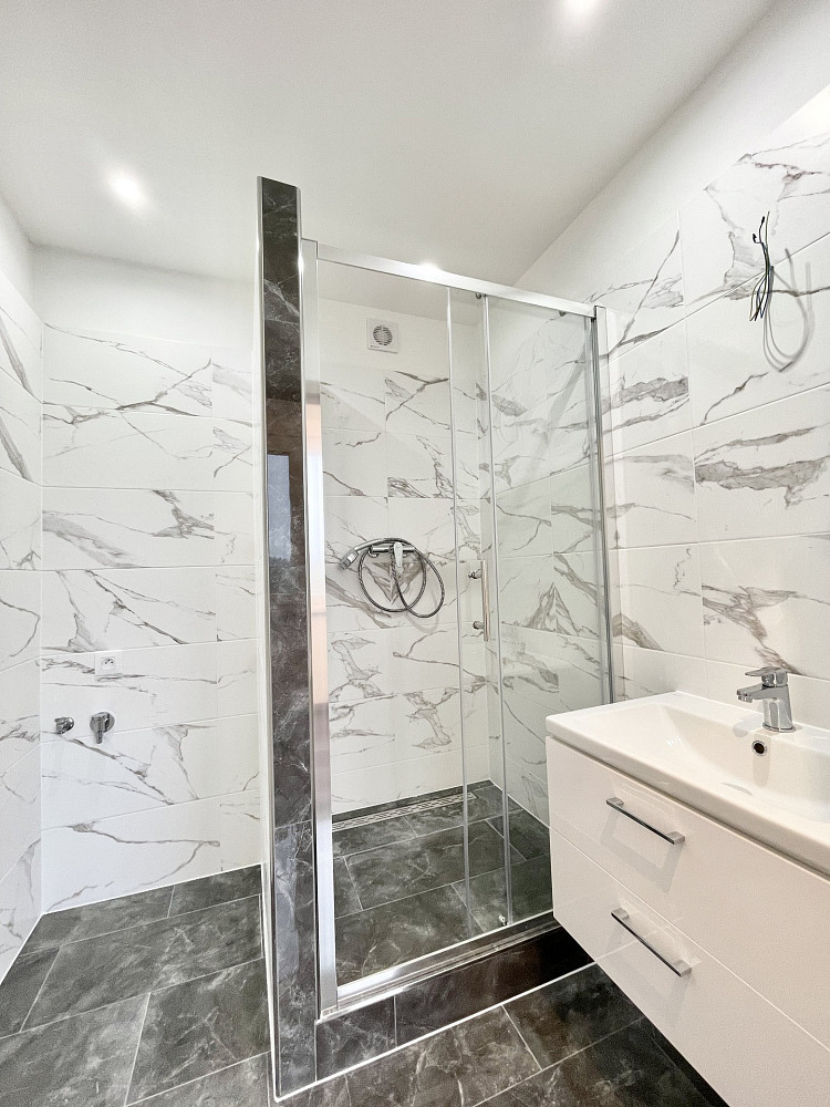 Nabízím Vám prodej slunného bytu 4+1 po kompletní vkusné rekonstrukci s krytou lodžií s krásným výhledem na adrese V Oblouku 577 Ústí nad Labem. Byt o celkové rozloze 81m² + lodžie 5m² + sklep, se nachází ve 2. patře (úroveň třetího patra) panelového domu BEZ VÝTAHU. Rekonstrukce bytu proběhla v maximálním rozsahu - nová elektroinstalace, vodoinstalace, dlažba v předsíni, kuchyni, koupelně a na WC, plovoucí podlaha v místnostech. V koupelně je velmi prostorný sprchový kout (100x90cm) a prostor na pračku i sušičku.