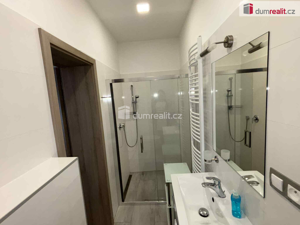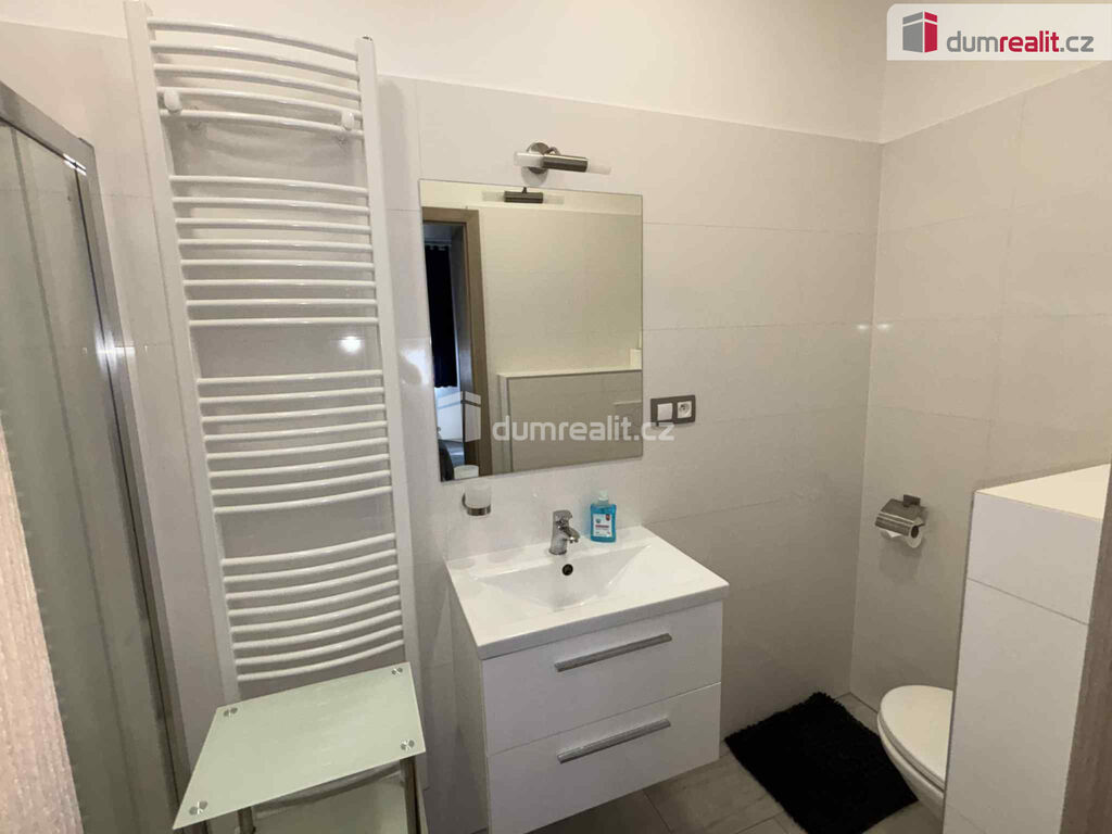 Koupelna je vybavena sprchovacím koutem, umyvadlem se zrcadlem a WC. Pračka a sušička jsou v suterénu ke společnému užívání.