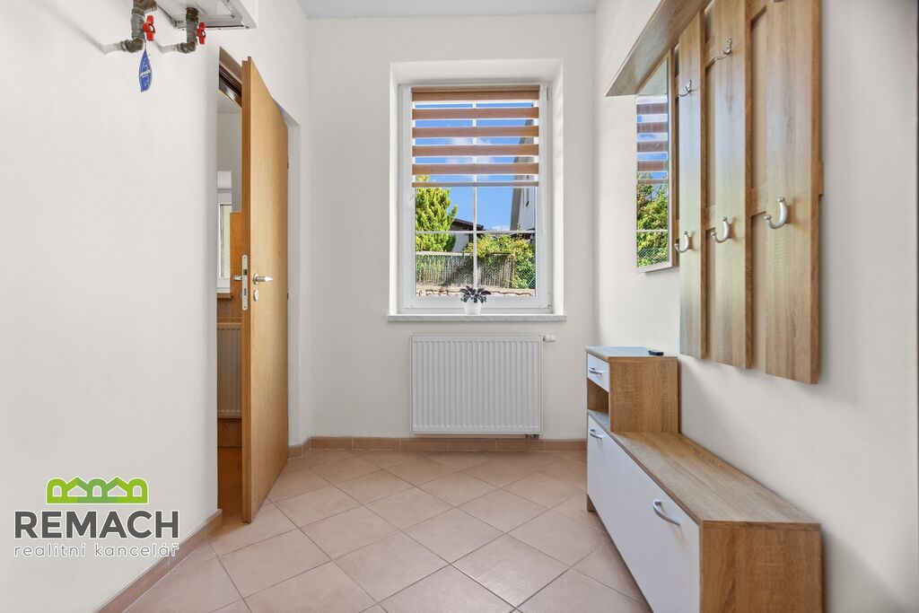 Dispozice: 2+1 ( vstupní chodba s předsíňovou stěnou, velký kuchyňský kout, velký obývací pokoj, komora a a obyvatelná místnost s okny v zadní části bytové jednotky, kuchyňský koupelna se sprchou a samostatné WC