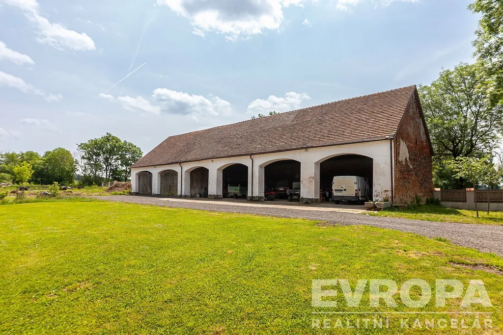 K statku patří dvě velké stodoly (720 m² a 429 m²) a nádvoří o rozloze 7 337 m². Celkově více než 1,6 ha pozemků dává prostor pro vaše sny – ať už toužíte po rodinném sídle, svatebním místě, agroturistice nebo jiném projektu.