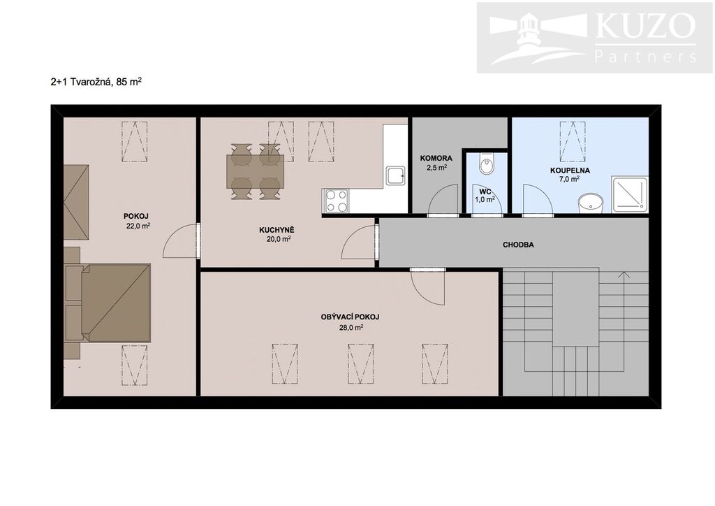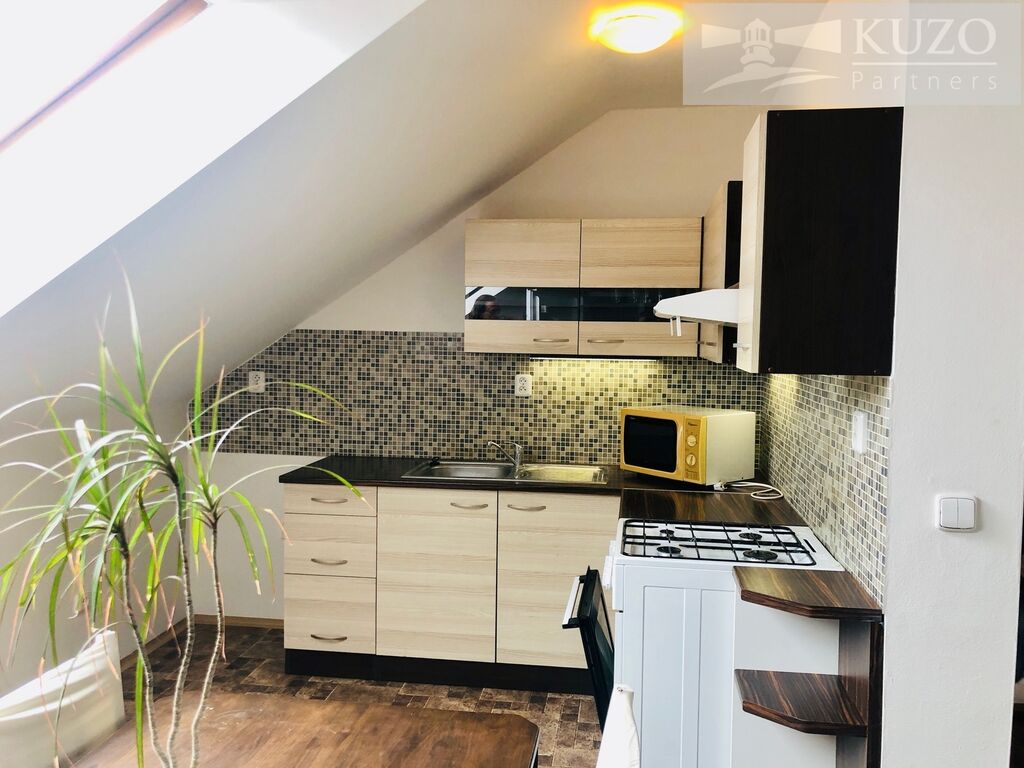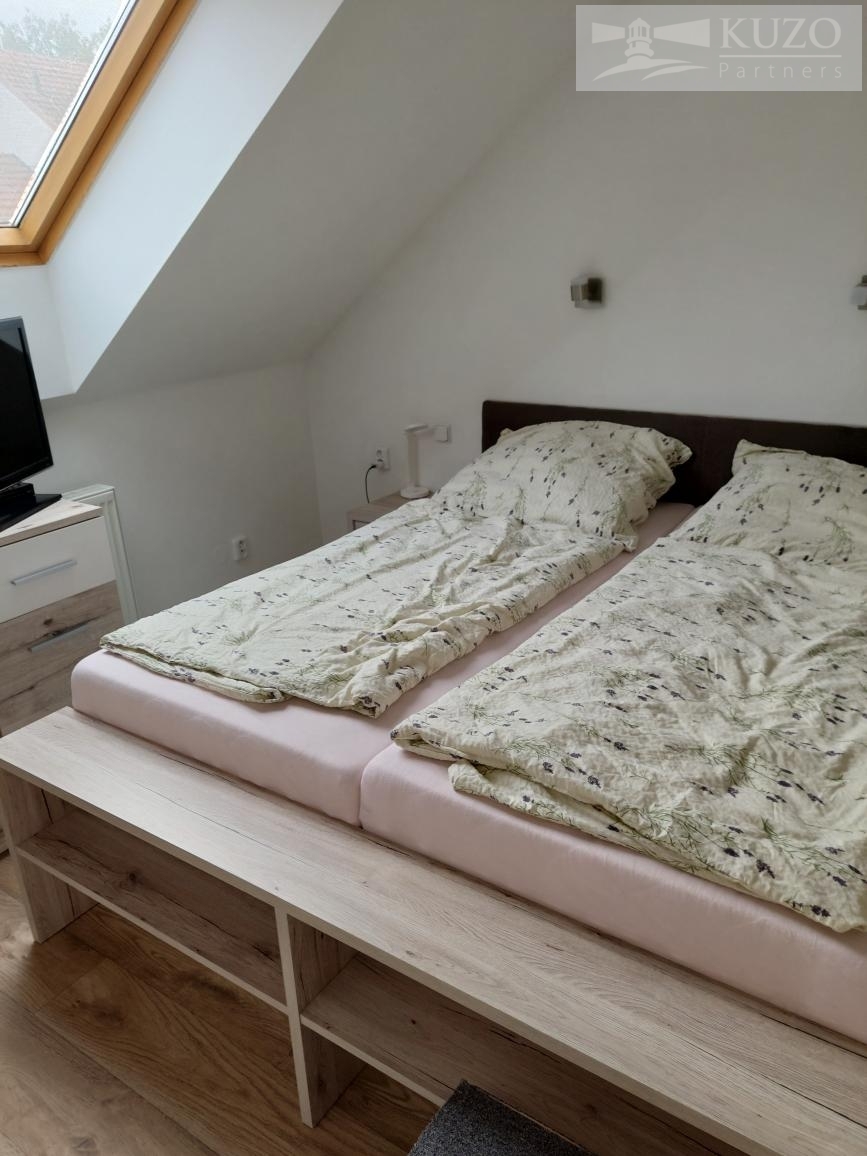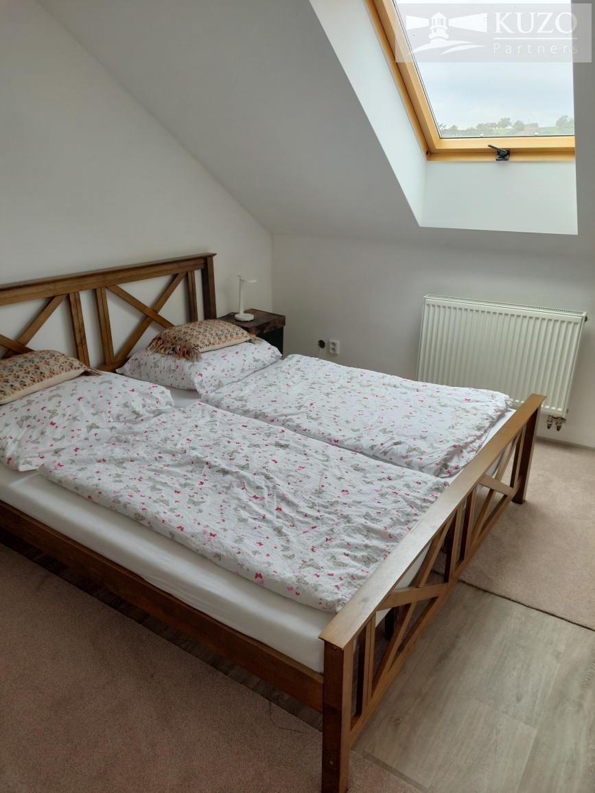 Pronájem kompletně zařízeného bytu 3+1, 85m2 . V podkrovním bytě se nachází kuch.linka s elektrospotřebiči, (sporák s troubou, digestoř, lednice), jídelní část, stůl, židle, ostatní nábytek v pokojích, viz. foto, je součástí zařízení bytu. Byt má samostatný vchod.