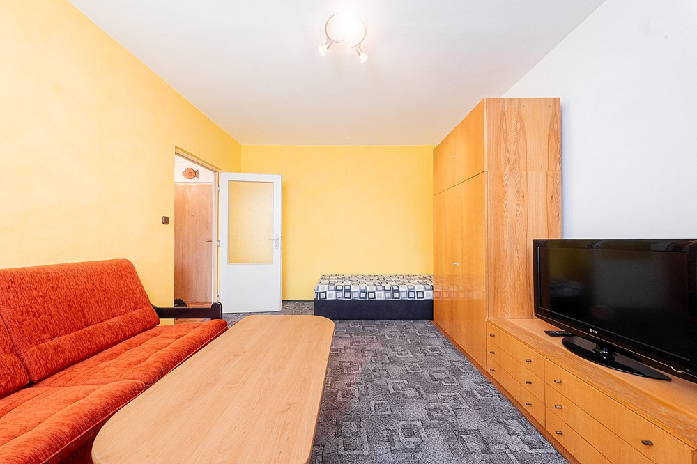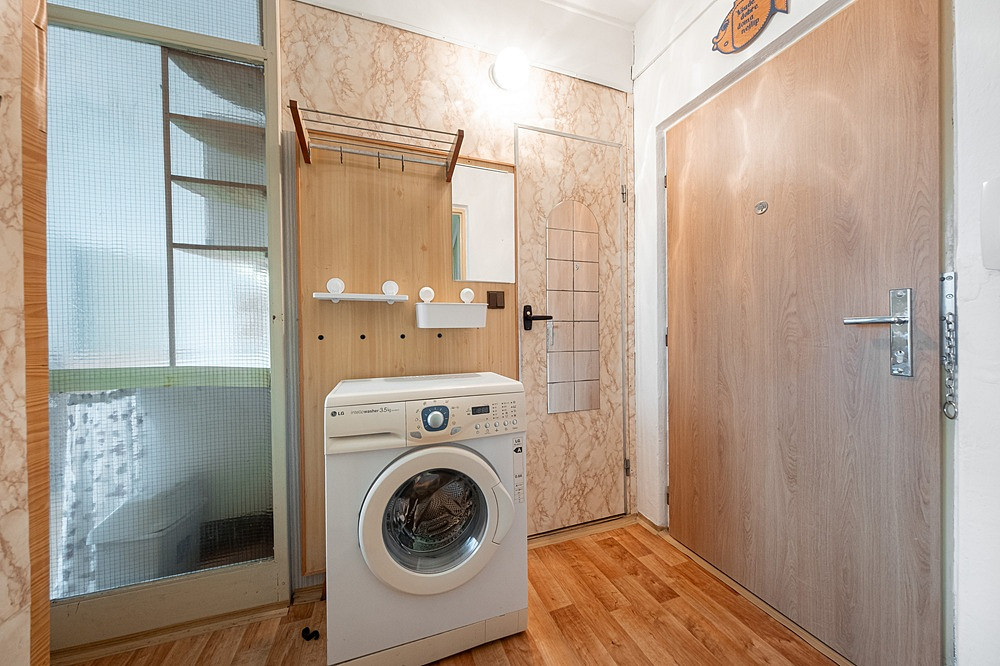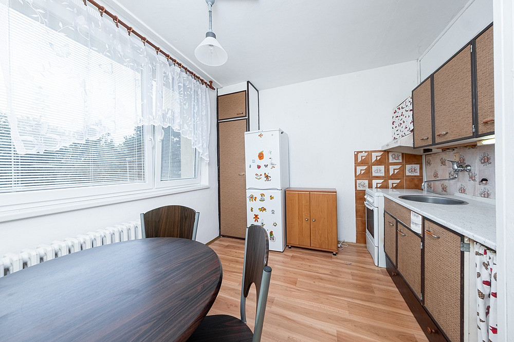 Dispozice: kuchyně 9 m² se spíží, pokoj 16 m² se vstupem na balkon 2,5 m², koupelna s vanou, společná s WC, k dispozici sklep, který nabízí úložný prostor navíc, což oceníte především při skladování sezónních věcí