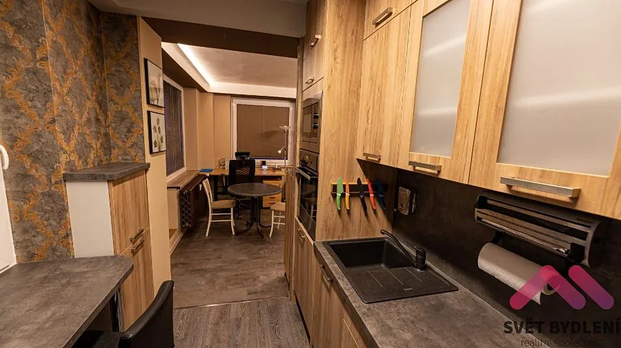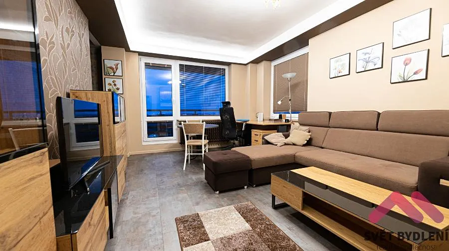 Nabízíme byt který se nachází v 7. patře s výtahem panelového domu po rekonstrukci. Byt je po rekonstrukci a je kompletně vybavený nábytkem viz. foto a dále je k dispozici kuchyňská linka se spotřebiči (myčka, mikrovlnná trouba, horkovzdušná trouba, lednice s mrazákem) dále je v koupelně k dispozici pračka. Byt je velice světlý a náleží k němu velká lodžie s krásným výhledem do okolí.