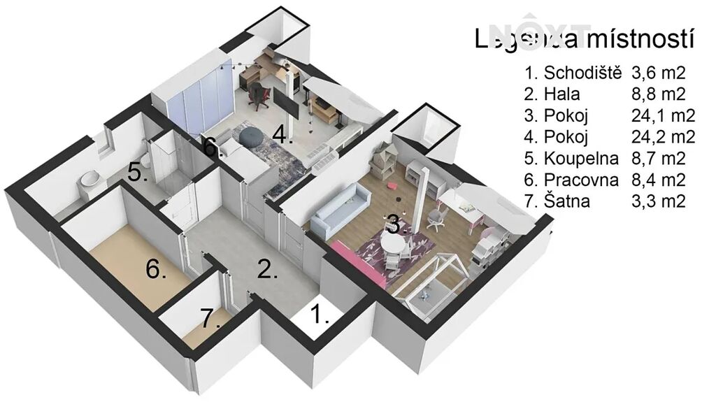 Exkluzivně Vám nabízíme k prodeji rodinný dům o dispozici 41 v klidné oblasti Břeclav - Poštorná. Jedná se o patrový dům se zahradou, předzahrádkou a vinným sklepem. Dům je po kompletní rozsáhlé rekonstrukci (v r. 2006 – 2008), je částečně podsklepený. Dům má dispozice: - přízemí: zádveří (1,3 m2), hala (4,4 m2), ložnice (12,3 m2), obývací pokoj (35,5 m2), kuchyň (14,5 m2), samostatné WC (1,2 m2), koupelna (6,5 m2) s vanou a sprchovým koutem a WC. - patro: schodiště (3,6 m2), hala (8,8 m2), dva pokoje (24,1 m2 a 24,2 m2), koupelna (8,7 m2) s vanou a sprchovým koutem a WC, šatna (3,3 m2), pracovna (8,4 m2). V pokojích jsou klimatizace. Dům je napojen na vodovod, elektřinu, plyn a kanalizaci. K dispozici je i vlastní studna. Vytápění domu zajišťuje plynový kotel, v obou koupelnách je podlahové vytápění. Ohřev vody je pomocí bojleru. K posezení a relaxaci lze využít zahradu či dvůr, jehož součástí je zastřešená pergola. Celková plocha pozemku je cca 247 m2. Parkování je možné přímo před domem. V blízkém okolí je veškerá občanská vybavenost – obchody, škola, školka, lékař, dětská hřiště, parky a mnoho možností pro sportovní a kulturní aktivity. Dle průkazu energetické náročnosti je nemovitost vedena ve třídě D. Pouze u nás vám zajistíme moderní financování až na 30 let, bez ohledu na věk a prokazování příjmů, či nutnosti předkládat daňové přiznání (u podnikatelů). Zeptejte se nás a bydlete chytře! Při osobní prohlídce nejlépe posoudíte, zda je tento dům vhodný právě pro Vaše nové bydlení. Pro více informací nebo sjednání prohlídky kontaktujte realitního makléře. Pro komunikaci uvádějte evidenční číslo zakázky N109691.