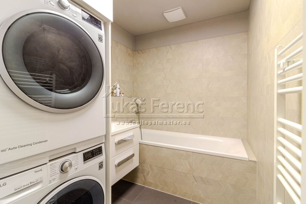 Součástí vybavení je kvalitní kuchyňská linka s kováním Blum a Hettich, na míru vyrobená TV stěna, vestavěné skříně a další úložné prvky. Benefitem jsou také žaluzie a sítě proti hmyzu, takže byt je připraven k pohodlnému bydlení bez dalších investic.