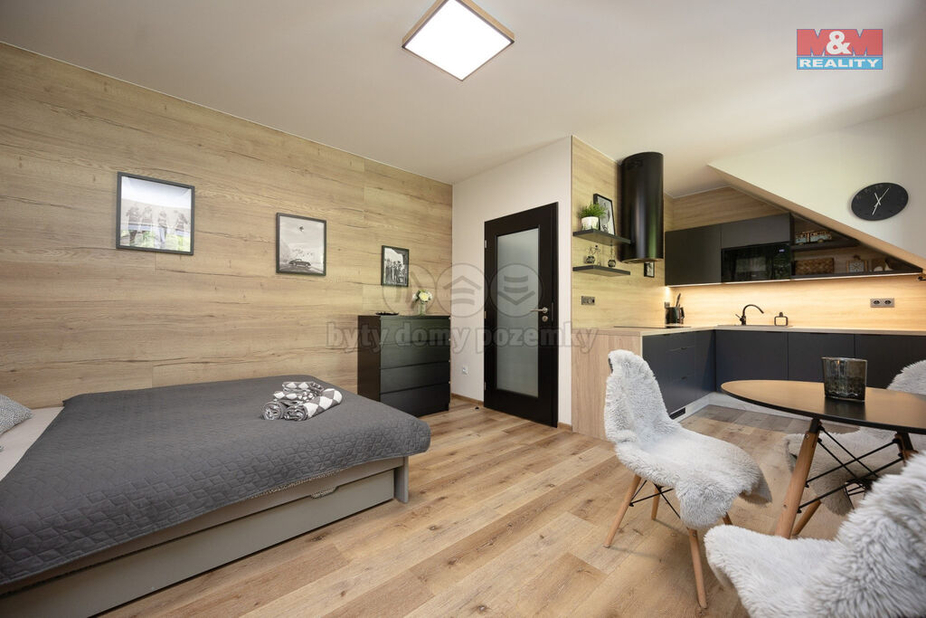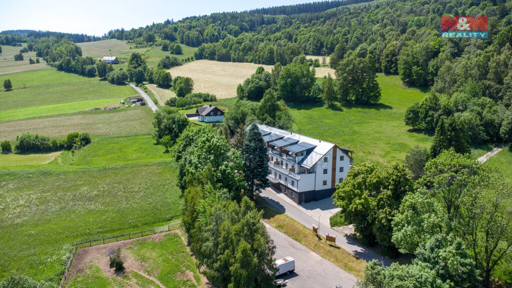 Nabízíme k prodeji útulný apartmán 1+kk (30,61m2) s terasou o velikosti 9,74 m2, který se nachází v novostavbě bytového domu. Apartmánový dům leží v klidné části Vrbno pod Pradědem. Byt najdete v posledním nadzemním podlaží a je ideální pro lidi hledající klidné bydlení v příjemném prostředí, nebo k rekreaci, či chtějí nemovitost využít ke krátkodobým pronájmům. Byt je plně vybavený a připravený k okamžitému nastěhování. Kuchyňská linka má vestavěnou myčku, ledničku, mikrovlnnou troubu, indukční varnou desku a digestoř. Byt má podlahové vytápění a má k užívání sklepní kóji a parkovací stání na parkovišti přímo u domu. Lokalita známá svou krásnou přírodou a nabízí mnoho možností pro volnočasové aktivity. Lázně Karlova Studánka leží pouhých 10 km a parkoviště Hvězda 12 km. Pokud hledáte investiční byt, či možnost rekreace v srdci přírody, tak je tento byt ideální volbou. Pro více informací nás neváhejte kontaktovat. S financováním vám rádi pomohou naši hypoteční specialisté
