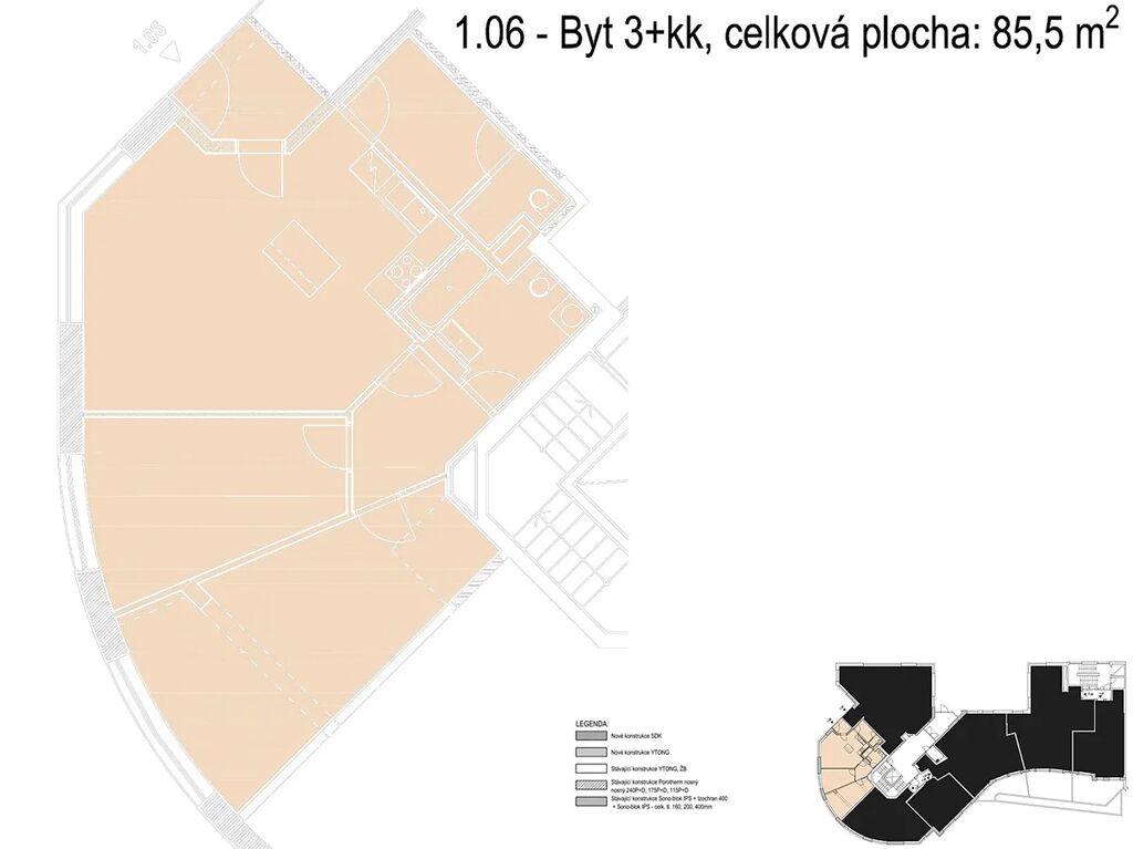 Nabízíme k prodeji prostorný byt o dispozici 3+KK s užitnou plochou 80,3m2.