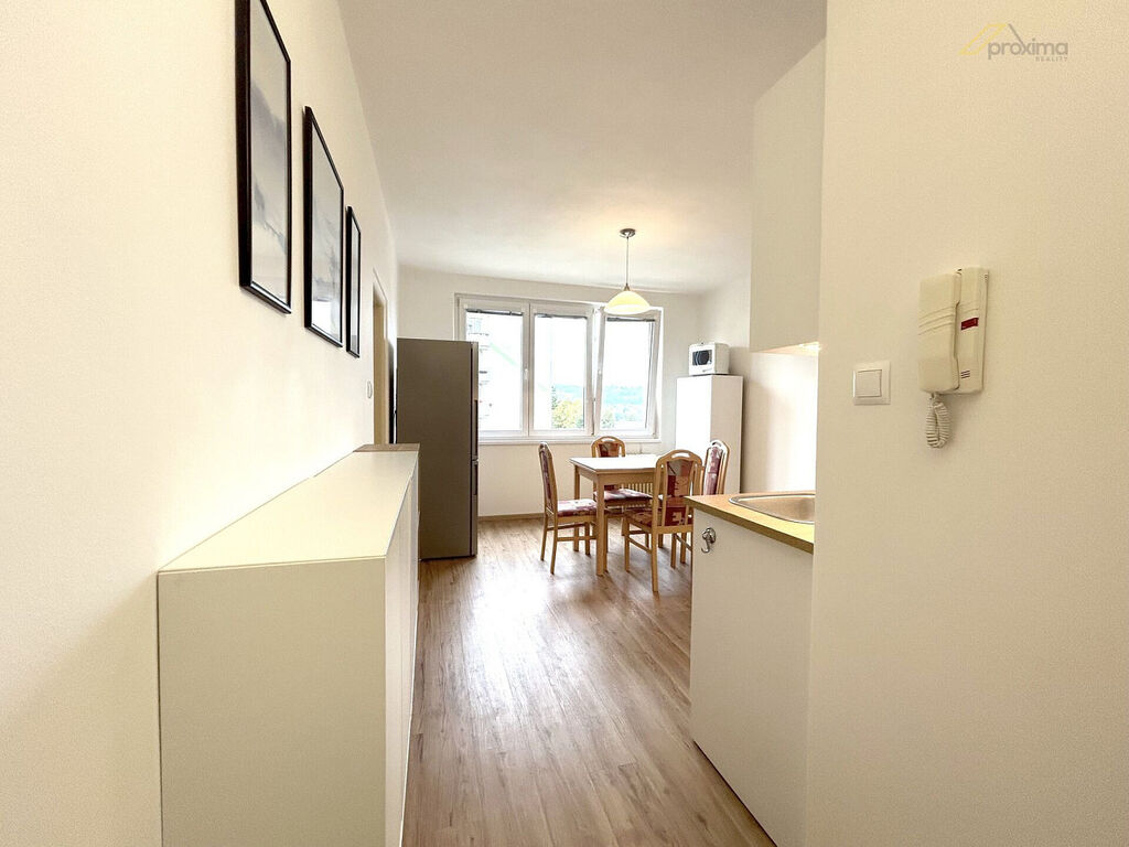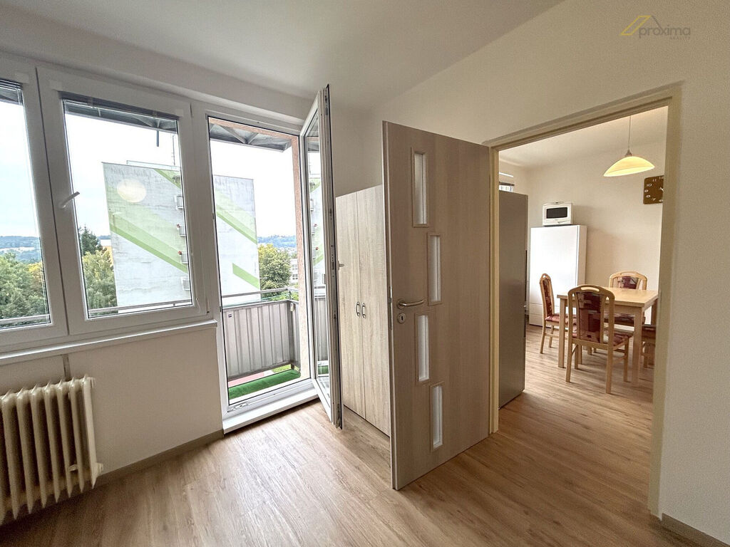 Realitní kancelář Proxima Reality nabízí k pronájmu světlý a kompletně zrekonstruovaný byt 1+1 s balkonem o celkové výměře 39 m² v klidné lokalitě Za Nádražím, Český Krumlov.