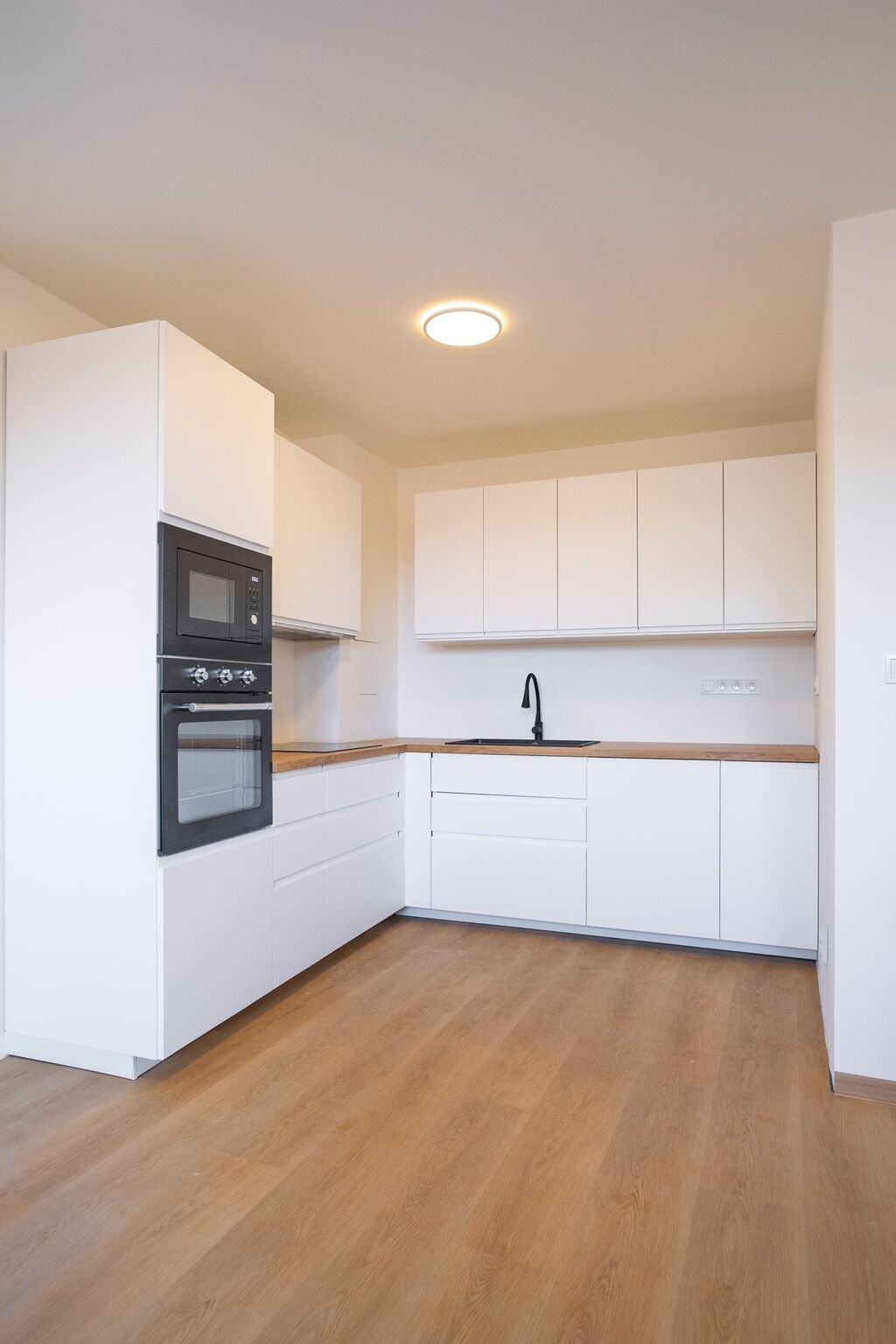Dispozičně prostor tvoří zádveří, prostorná koupelna s vanou, sprchovou zástěnou, také prostor pro pračku. Samostatné WC. Na zádveří navazuje obývací pokoj s jídelní částí vybavenou novou kuchyňskou linkou a vestavěnými spotřebiči, mezi nimiž nechybí indukční varná deska, elektrická trouba ani mikrovlnná trouba. Z jednoho pokoje můžete udělat šatnu či dětský pokoj. Prostorná ložnice je samostatně přístupná a oddělena od obývací části. Stejně tak má samostatný vstup další místnost, např. dětský pokoj nebo pracovna. Pokoje jsou hezky prosvětlené, díky vhodné orientaci světových stran a ze spojovací chodby jsou všechny pokoje samostatné – tedy neprůchozí, což jistě oceníte.