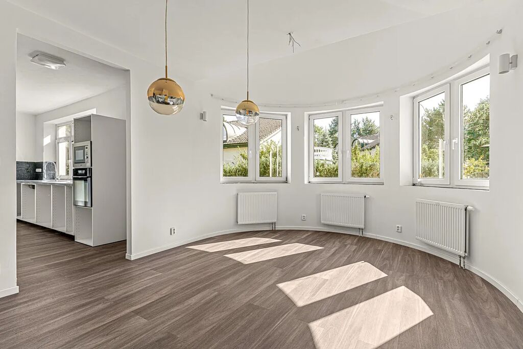 Dům prošel rekonstrukcí celého přízemí a částečnou rekonstrukcí 1. patra, kde byla ponechána jedna ložnice, šatna a 2 koupelny ve stavu Shell&Core. Tato skutečnost nabízí novému majiteli neomezené možnosti dokončení finálních povrchů dle svých představ a moderních trendů.