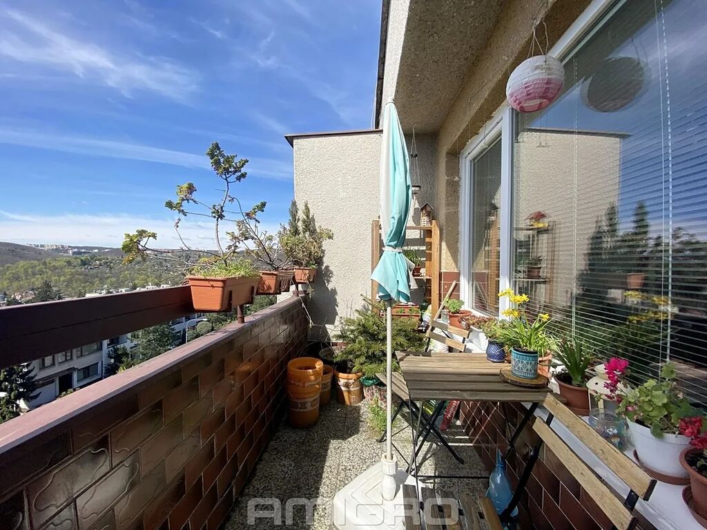 Z terasy je krásný výhled na brněnské výstavistě, okolní lesy, Nový Lískovec, Kohoutovice.