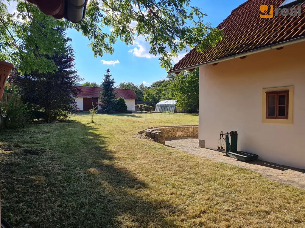 Na zahradě je nově vybudovaná garáž 40 m2 s velkým úložným prostorem na zahradní stroje, motorky a nářadí. Mimo to u přední části domu stojí nově postaveny kůlničky v top stavu, které mají využití jako úložné prostory. Za domem jsou další kolny dřevěné a skleník. Kolem domu kamenný chodníček s terasou.