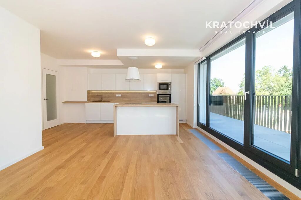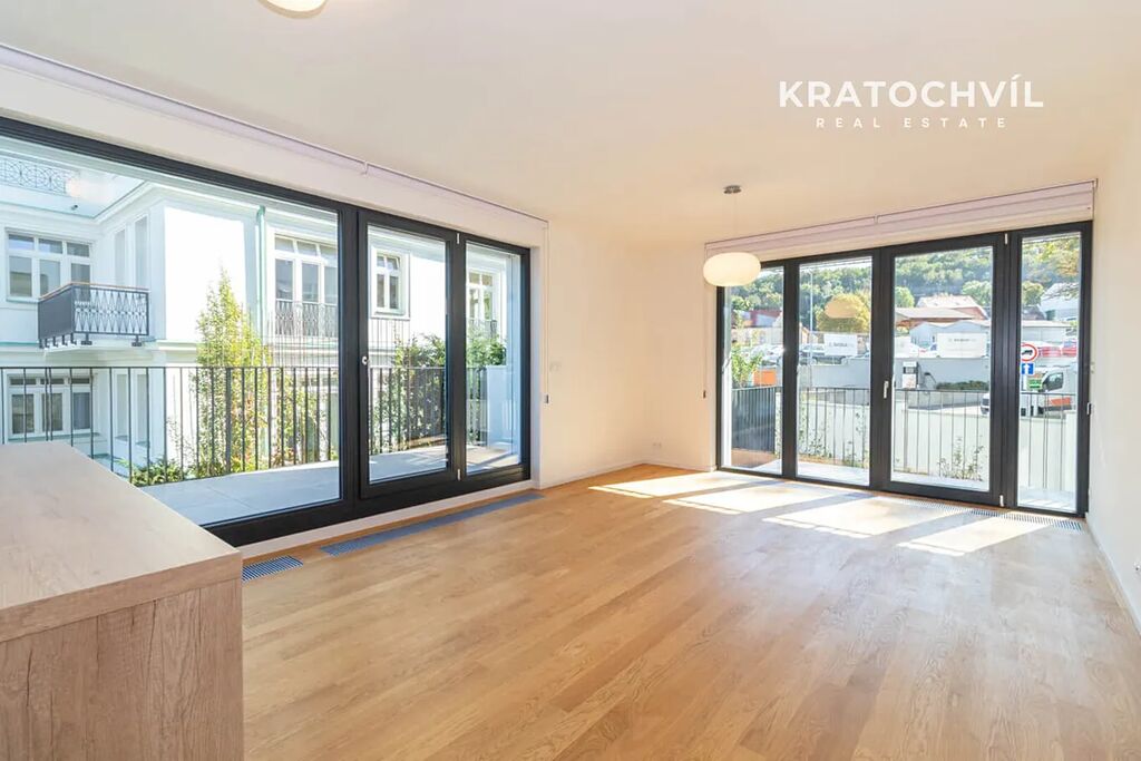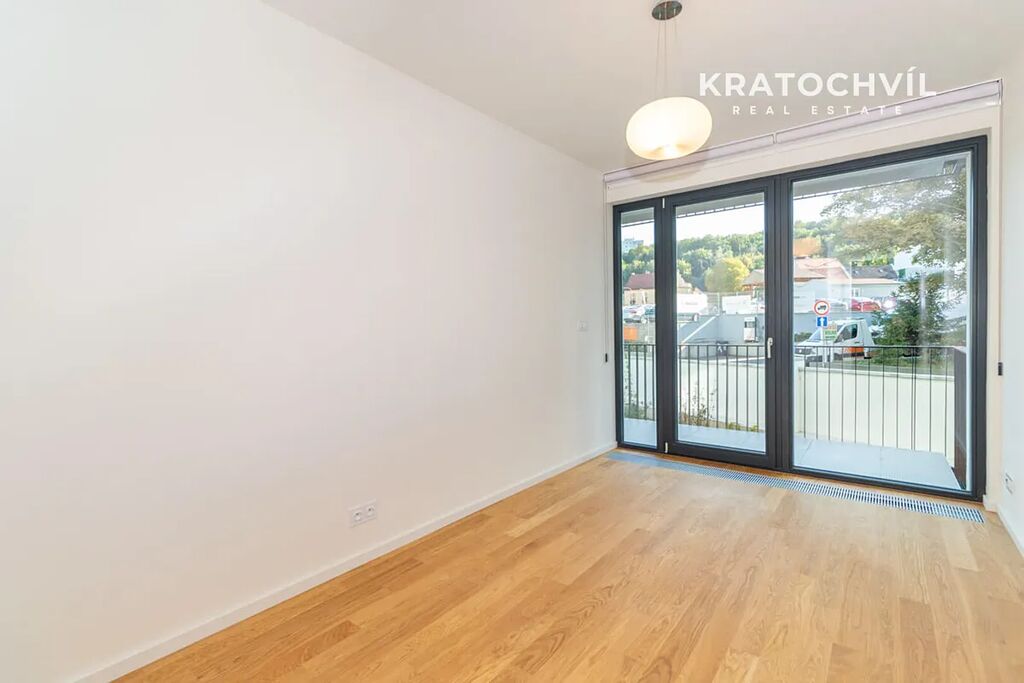 Byt je nezařízený, vybavený kvalitními dřevěnými podlahami a hliníkovými okny.
