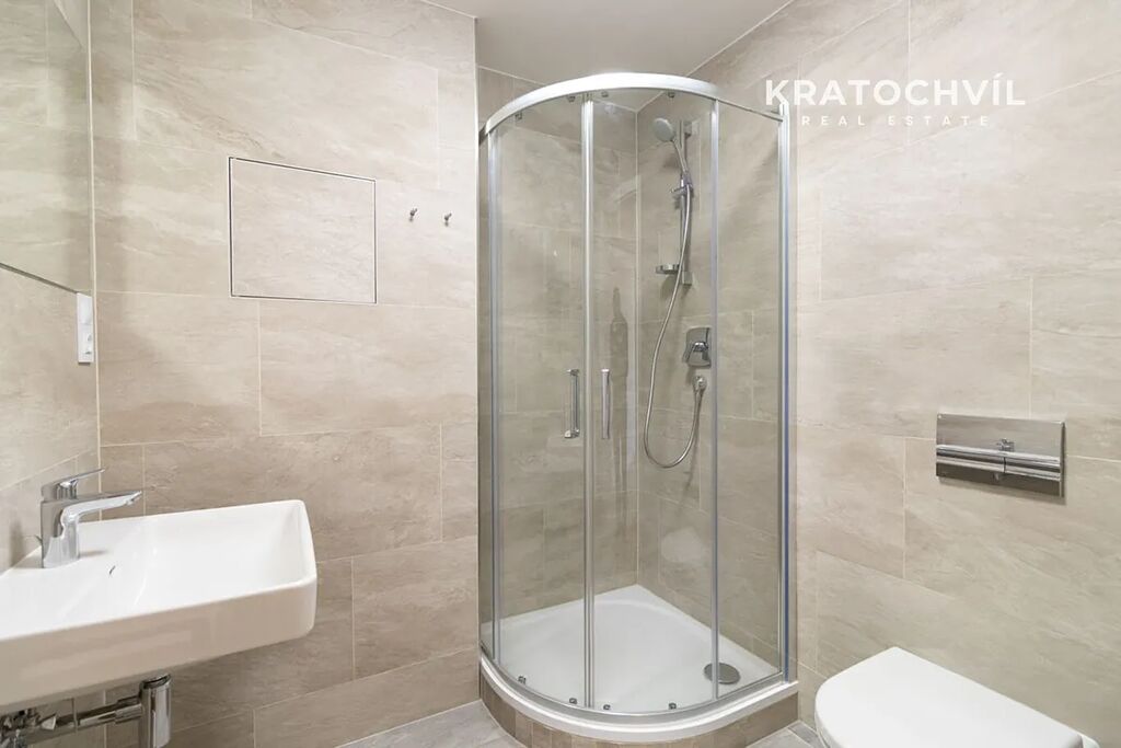 Součástí pronájmu je prostorná sklepní kóje a garážové stání v suterénu domu.